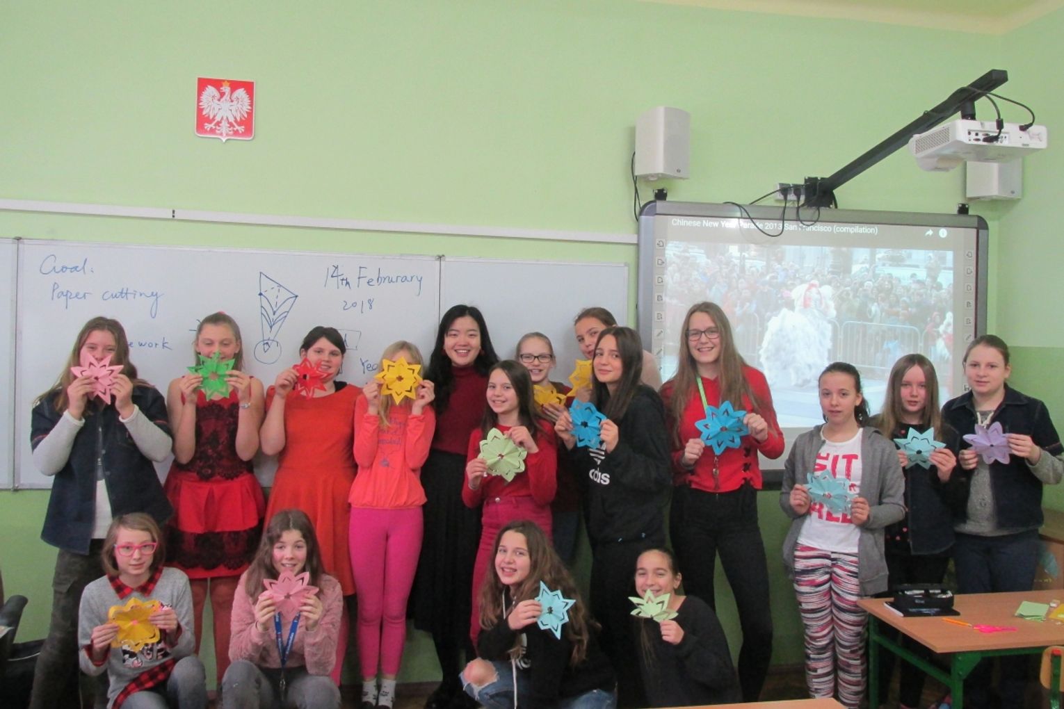 Było to niezwykłe zderzenie trzech jakże odmiennych kultur: europejskiej z azjatycką i bliskowschodnią. I to w naszej niewielkiej szkole! Nasi goście przez cały tydzień prowadzili zajęcia z języka angielskiego opowiadając o swoich krajach, zwyczajach w nich panujących, obchodzonych świętach. Wśród ciekawostek, którymi każdego dnia byliśmy zaskakiwani przez naszych gości, najbardziej chyba zapadnie nam w pamięci przykład chińskiej szkoły, w której to uczniowie spędzają po 10 godzin dziennie, a po powrocie do domu zasiadają do odrabiania zadań domowych(!)