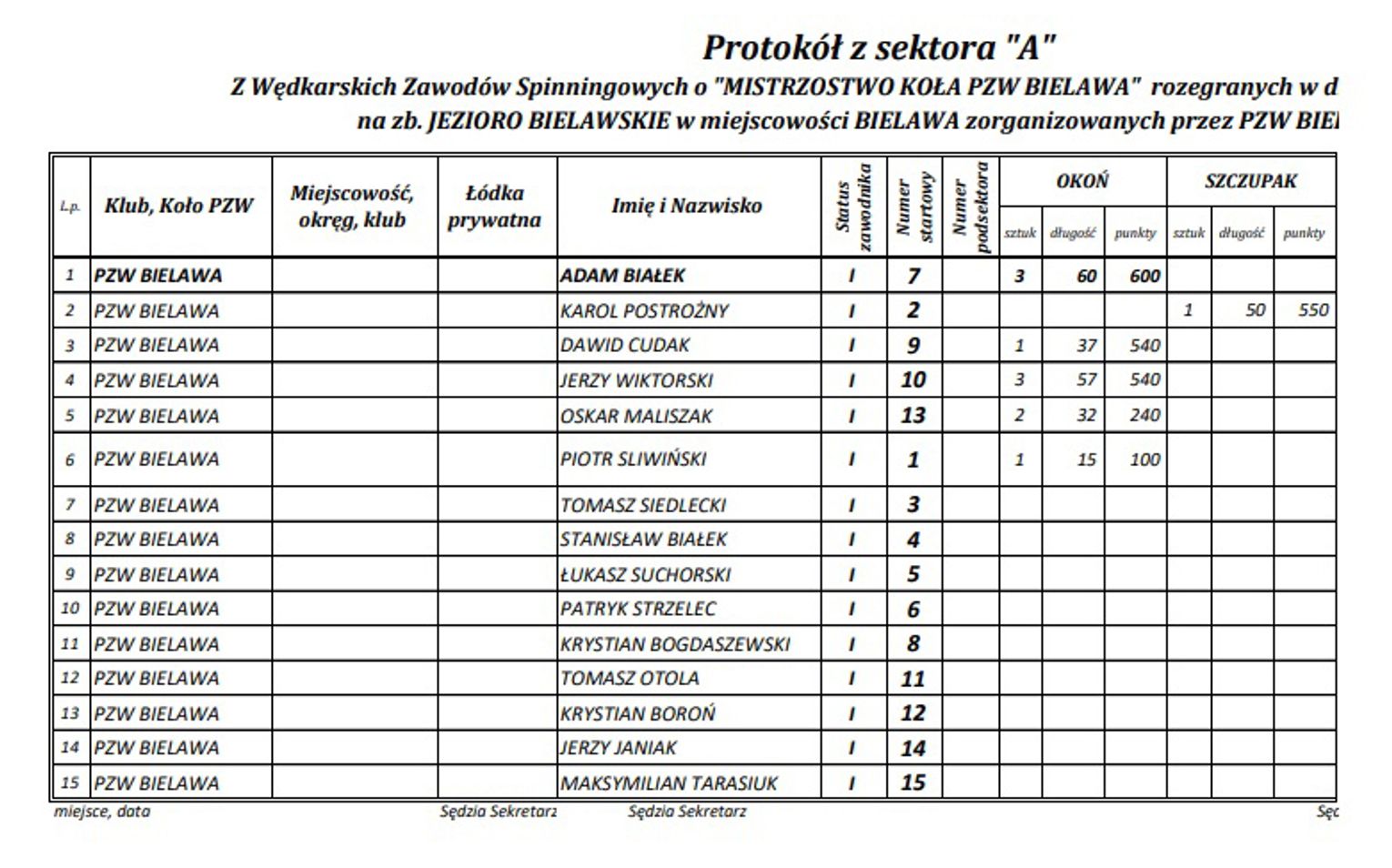 Sobotnie zawody spinningowe stały pod znakiem zapytania czy się odbędą z powodu braku chętnych. Ale co źle się zaczyna, to dobrze się kończy i sobotę 22 czerwca nad Jeziorem Bielawskim stanęło do rywalizacji piętnastu spinningistów z koła PZW Bielawa. Po krótkiej odprawie i objaśnieniu regulaminu o godz. 7:30 rozpoczęły się zmagania i od początku było widać, że ryba nie będzie współpracować z wędkarzami. I tylko nieliczni potrafili przechytrzyć rybę, ale też ryba potrafiła przechytrzyć wędkarza i tuż przy brzegu machnęła ogonem z pyska wypluwając hak. Spośród wszystkich zawodników zostały rozlosowane nagrody pocieszenia, które zostały ufundowane przez firmę Relax Lures. Zarząd Koła PZW Bielawa dziękuje za wsparcie w postaci nagród. Poniżej znajdziecie zdjęcia oraz wyniki sobotnich zmagań.