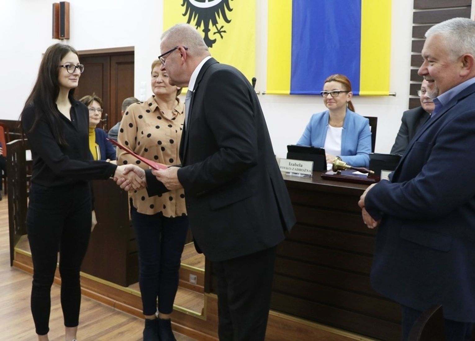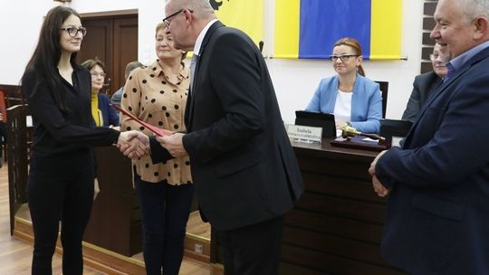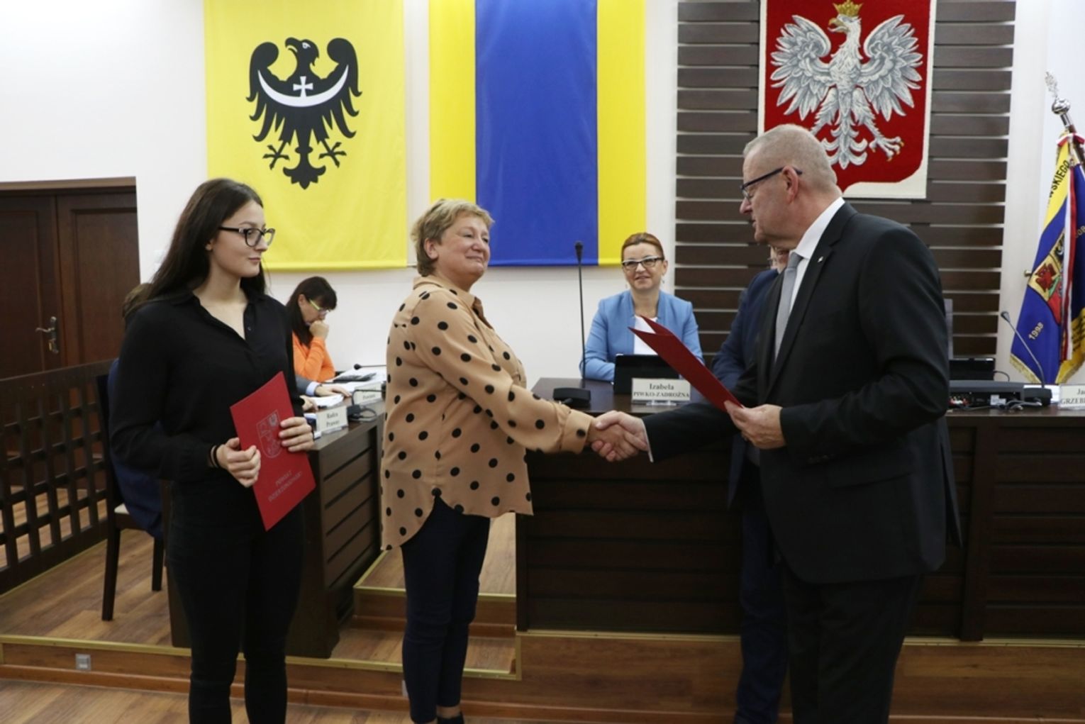 Przed omówieniem tego punktu nastąpiło wręczenie stypendiów w ramach programu promującego wybitne osiągnięcia uczniów szkół prowadzonych przez Powiat Dzierżoniowski „Złoty Talent”.