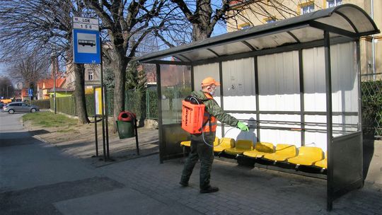 W pierwszej kolejności dezynfekcją objęto wiaty na przystankach autobusowych, biletomaty, ławki przy przystankach oraz ławki przy głównych ciągach komunikacyjnych. Płyn dezynfekujący jest bezpieczny dla ludzi oraz zwierząt.