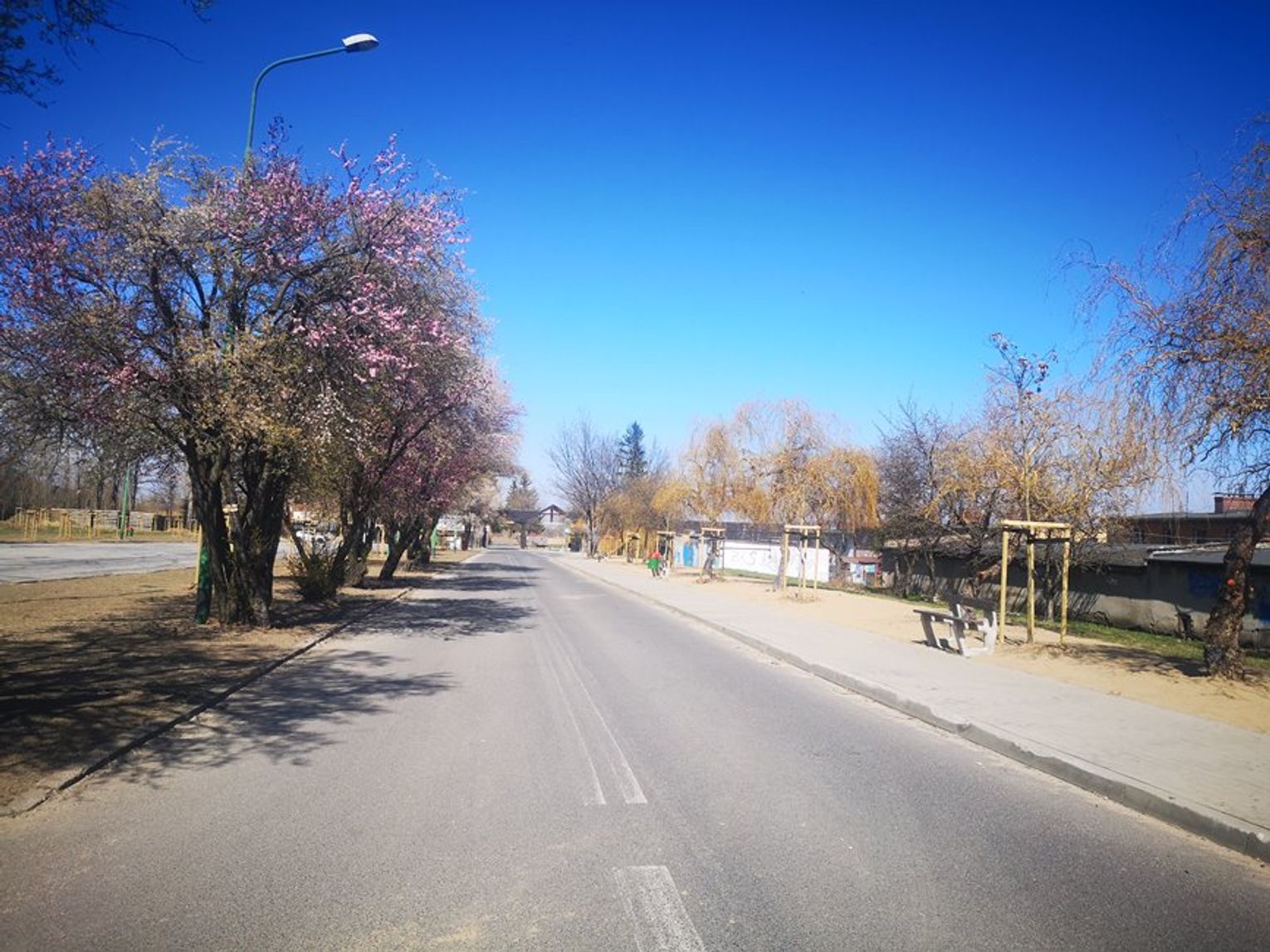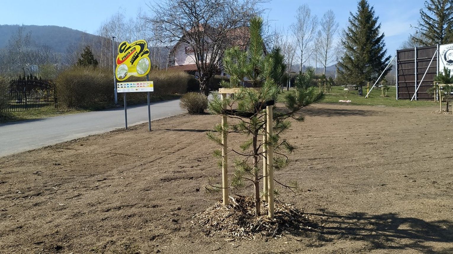 Powstaną tu nowe ścieżki i place, a stare nawierzchnie szutrowe zostaną zdemontowane. Przy drodze głównej, zobaczyć już można elementy małej architektury (drewniane pergole, osłony na kontenery na śmieci czy elementy zieleni tj. grupy drzew i krzewów oraz roślin zielnych).