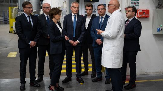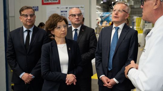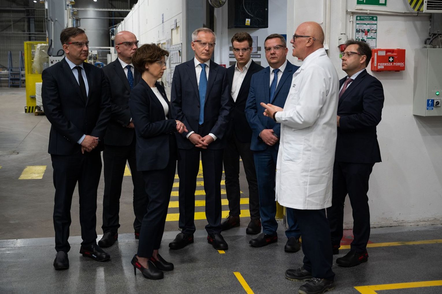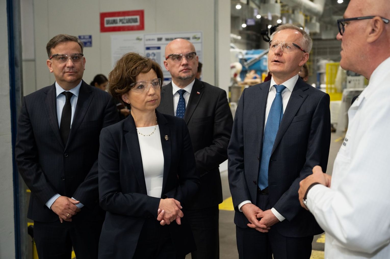 Podczas wizyty na terenie zakładu Libra Minister Marlenie Maląg towarzyszyli: poseł Marcin Gwóźdź oraz Wicewojewoda Dolnośląski Jarosław Kresa.