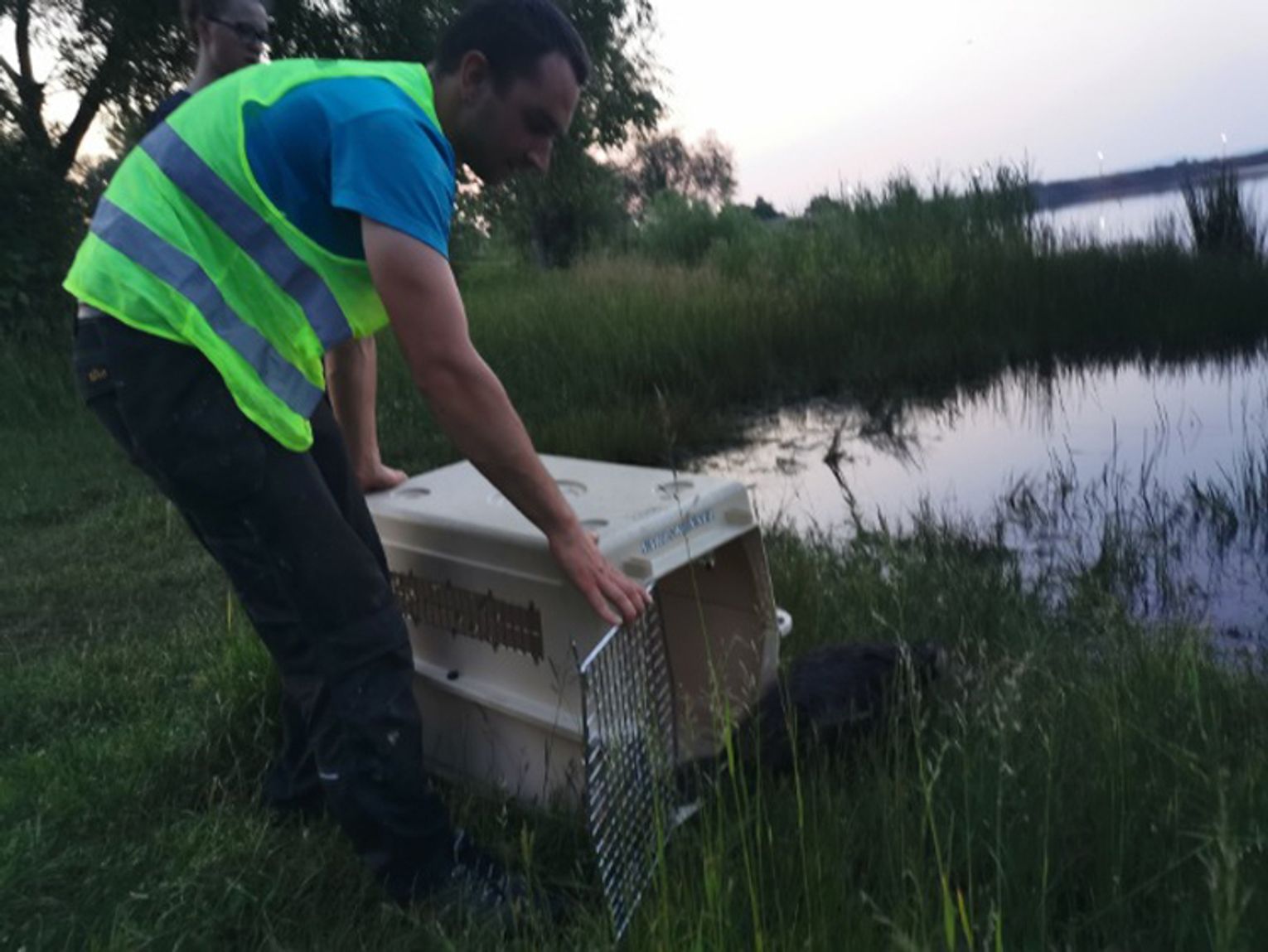 Bielawscy funkcjonariusze udali się na miejsce zgłoszenia. Z relacji zgłaszającej wynikało, że zwierze było wykończone, co wskazywało na fakt, że od pewnego czasu bezskutecznie próbowało samo wydostać się z kanału. Grupa interwencyjna fundacji - pracownicy Adrianna Kaszuba i Krystian Botew pomogli w odłowie zwierzęcia i przewiezieniu go do jego naturalnego środowiska - bóbr zamieszał w bielawskim jeziorze.