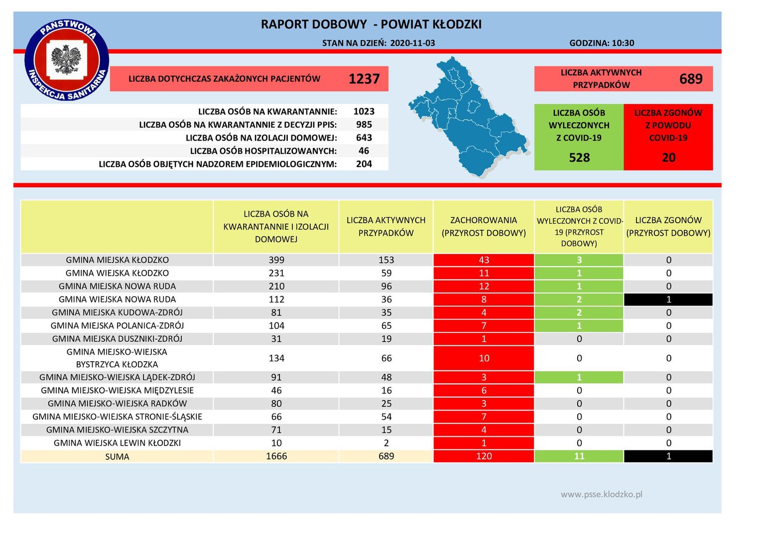 Państwowa Stacja Sanitarna w Kłodzku podała najnowsze dobowe statystyki dotyczące kolejnych zakażeń Covid -19.