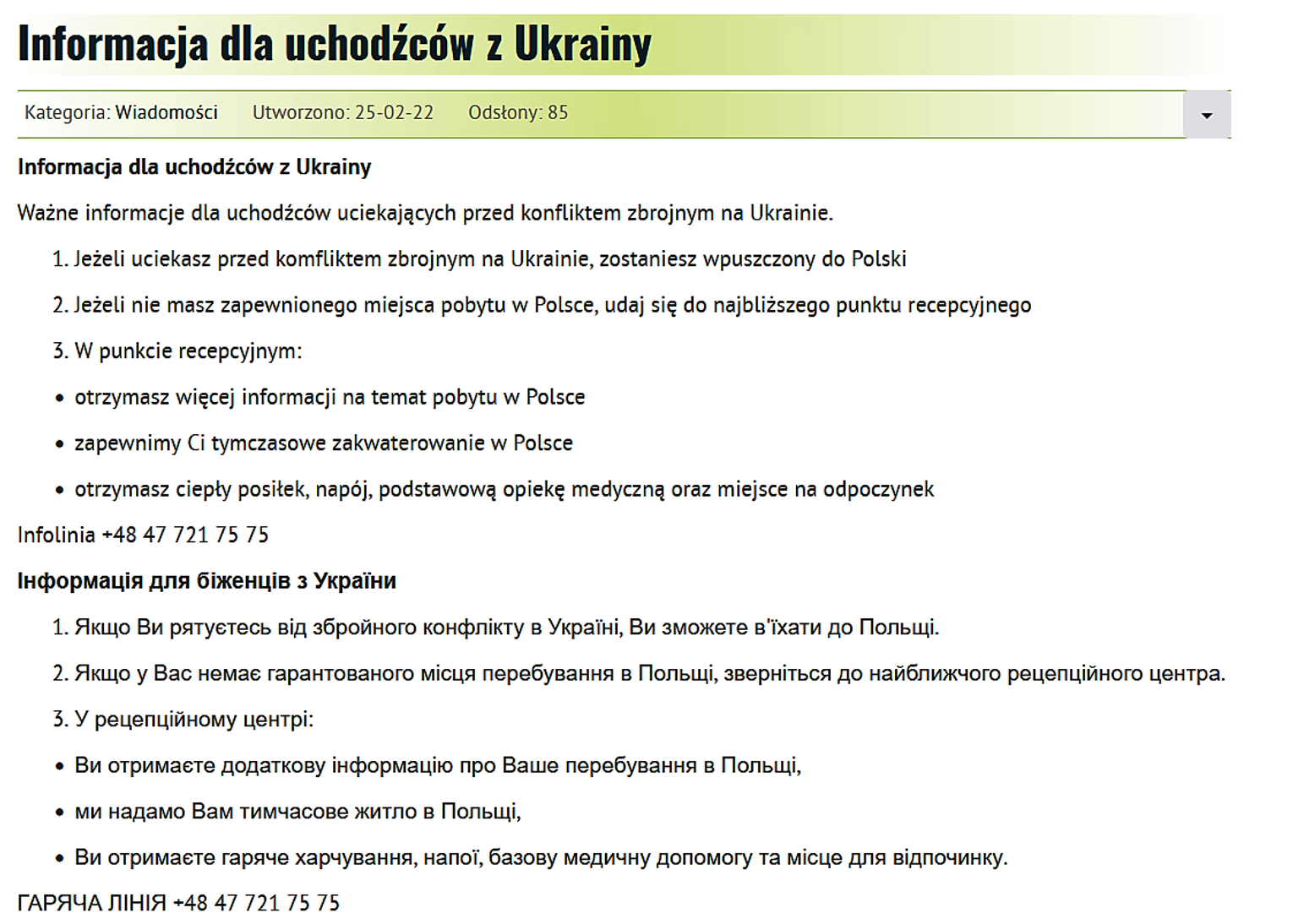 W najbliższych dniach rząd Polski ma wprowadzić regulacje prawne, które umożliwią bezpośrednie zaangażowanie się w pomoc naszym wschodnim sąsiadom także i samorządom. Wówczas zostanie rozwiązana rezerwa celowa z budżetu Gminy Bielawa, która umożliwi finansowanie wsparcia organizacyjnego i logistycznego dla uchodźców.