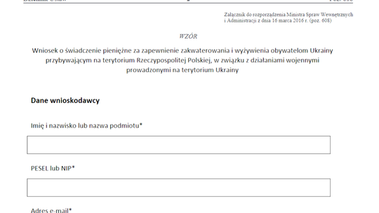 Zgodnie ze specustawą, wniosek o świadczenie pieniężne powinien zawierać: