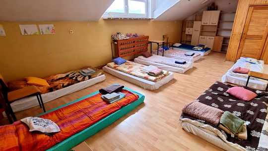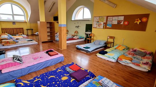 W związku z tym, na ostatniej kondygnacji "nowego" budynku szkoły, urządzono 5 sal noclegowych dla łącznie 46 osób. Zorganizowano również moduł kuchenny oraz kącik zabaw dla dzieci. Zabezpieczono także część higieniczno-sanitarną.