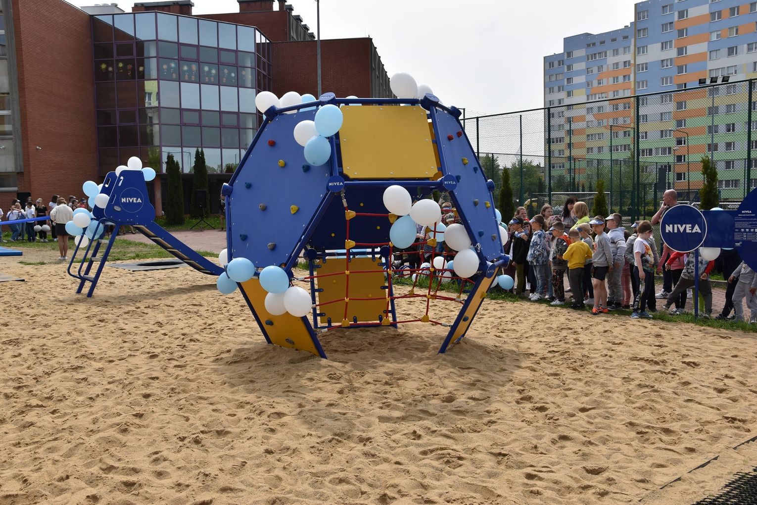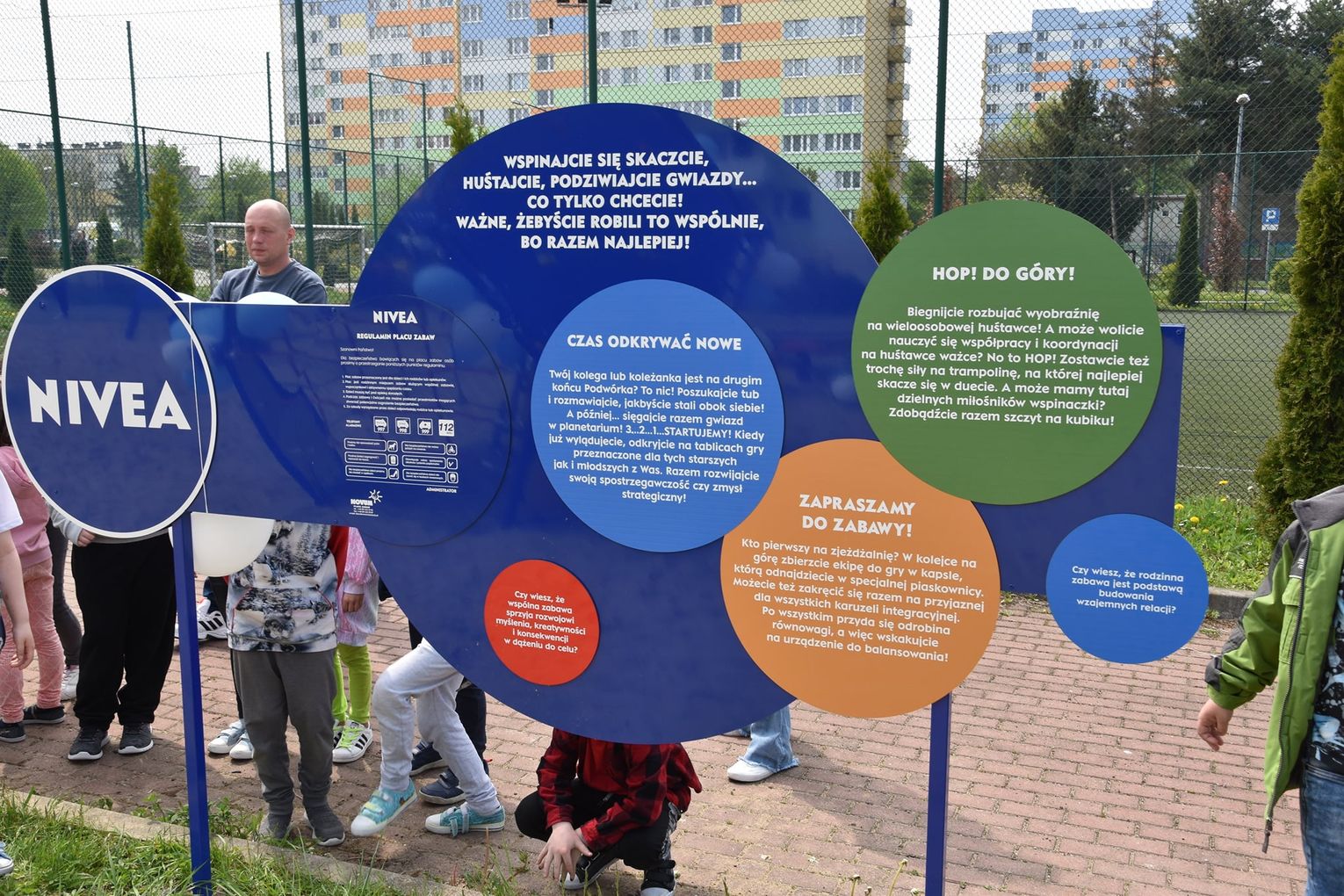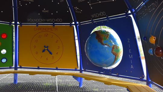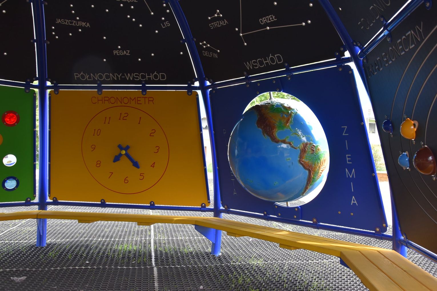 Są tam tablice z grami ćwiczącymi myślenie strategiczne, kubik do wspinaczki, urządzenie do balansowania, huśtawka z różnymi siedziskami, planetarium (układ ścianek z globusem), karuzela integracyjna przystosowana także do potrzeb dzieci niepełnosprawnych, trampolina, piaskownica, tuby do rozmów na odległość, piaskownica czy huśtawka ważka. Plac zabaw jest dostępny dla wszystkich dzieci.