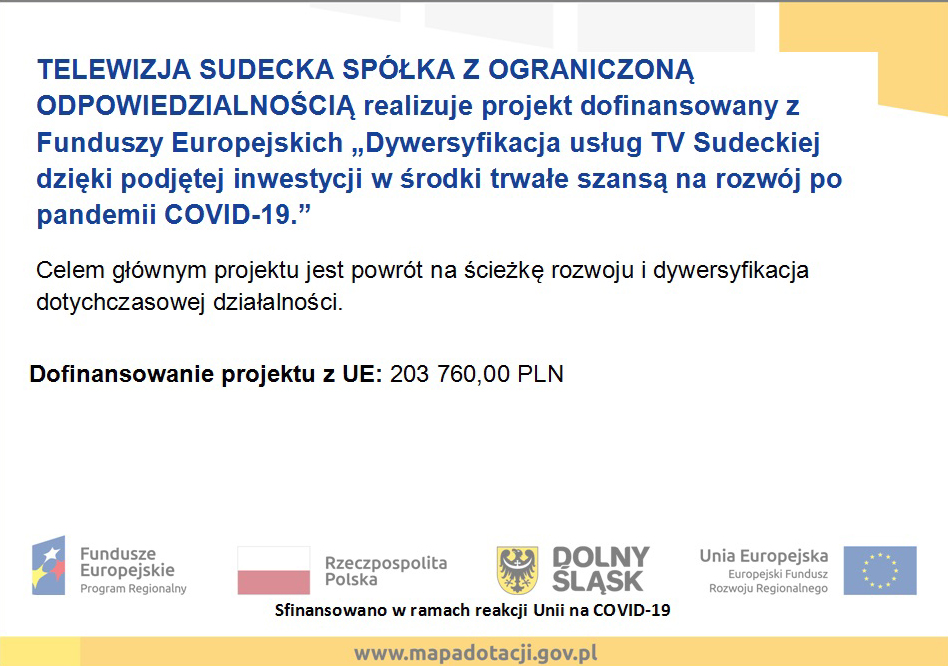 „Dywersyfikacja usług Telewizji Sudeckiej dzięki podjętej inwestycji w środki trwałe szansą na rozwój po pandemii COVID-19.”