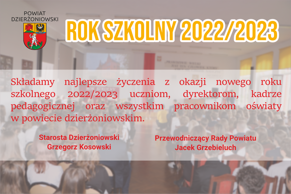 Wśród nich, pierwszy dzwonek na lekcję w szkołach ponadpodstawowych usłyszy 1170 pierwszoklasistów. Najlepsze życzenia z okazji rozpoczętego roku szkolnego życzą uczniom, dyrektorom, kadrze pedagogicznej i wszystkim pracownikom oświaty w powiecie dzierżoniowskim, starosta dzierżoniowski Grzegorz Kosowski oraz przewodniczący Rady Powiatu Jacek Grzebieluch.