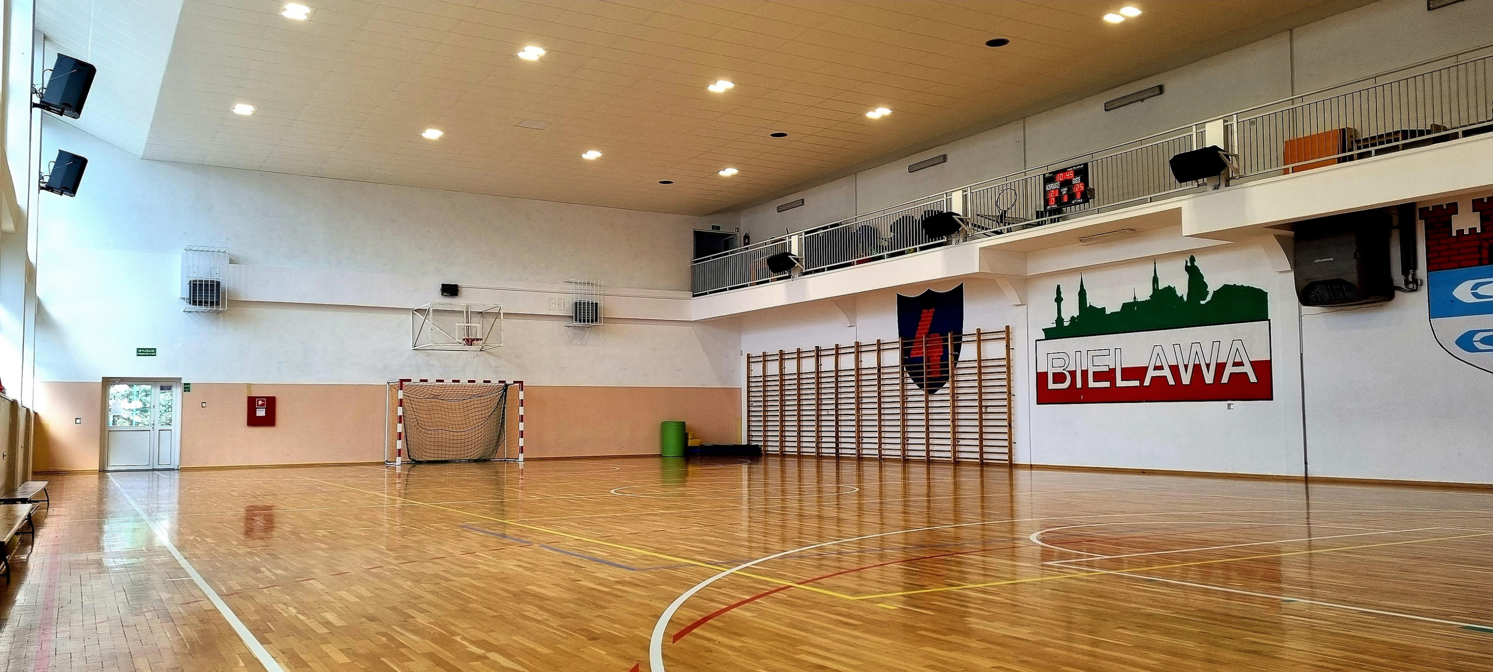 sali gimnastycznej, w tym m.in.: wykonano wygłuszenie stropu oraz montaż nowego nagłośnienia, odnowiono zaplecze sanitarno – szatniowe i ciągi komunikacyjne