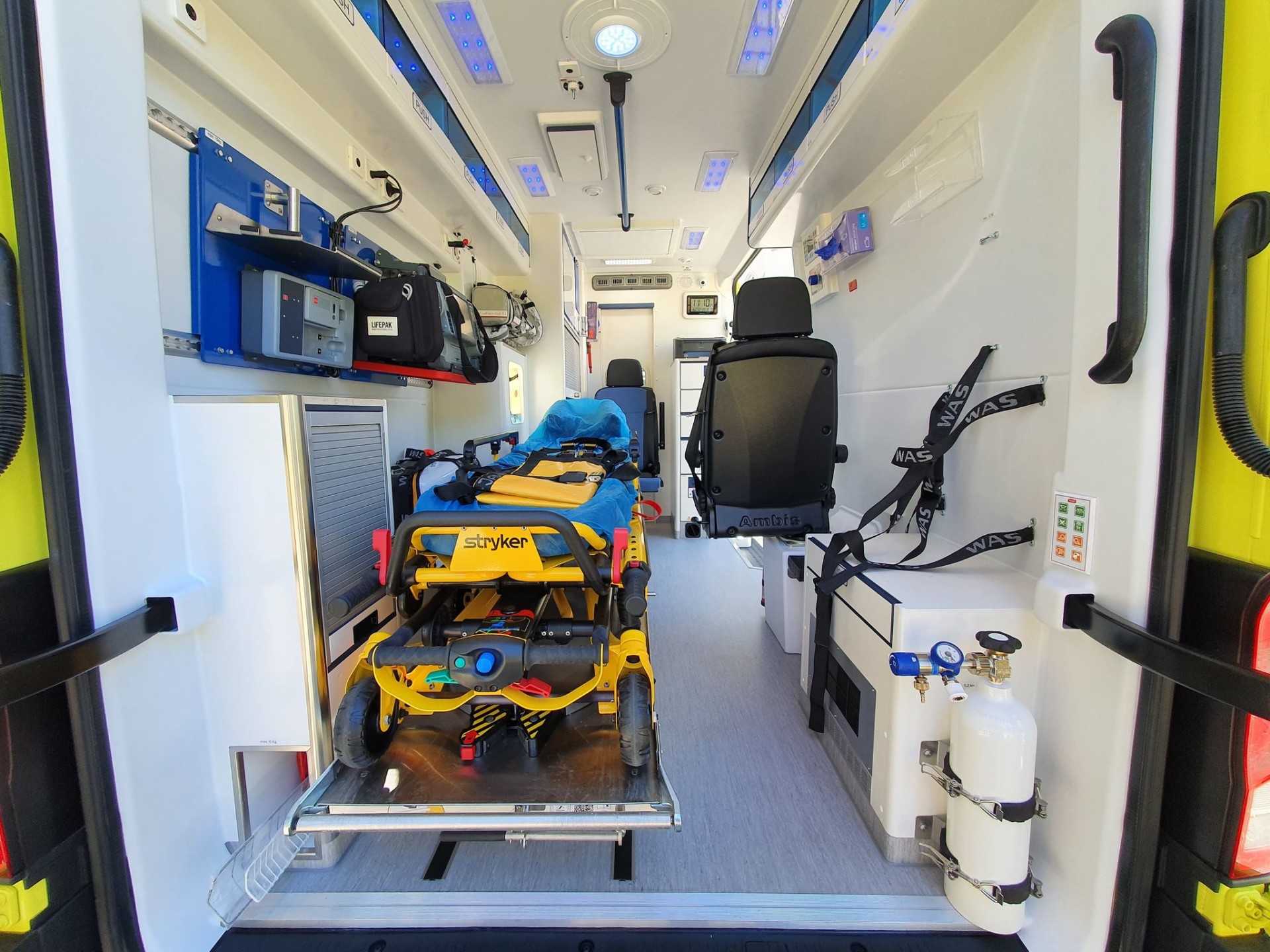 Ambulans marki VW Crafter posiada następujące wyposażenie: