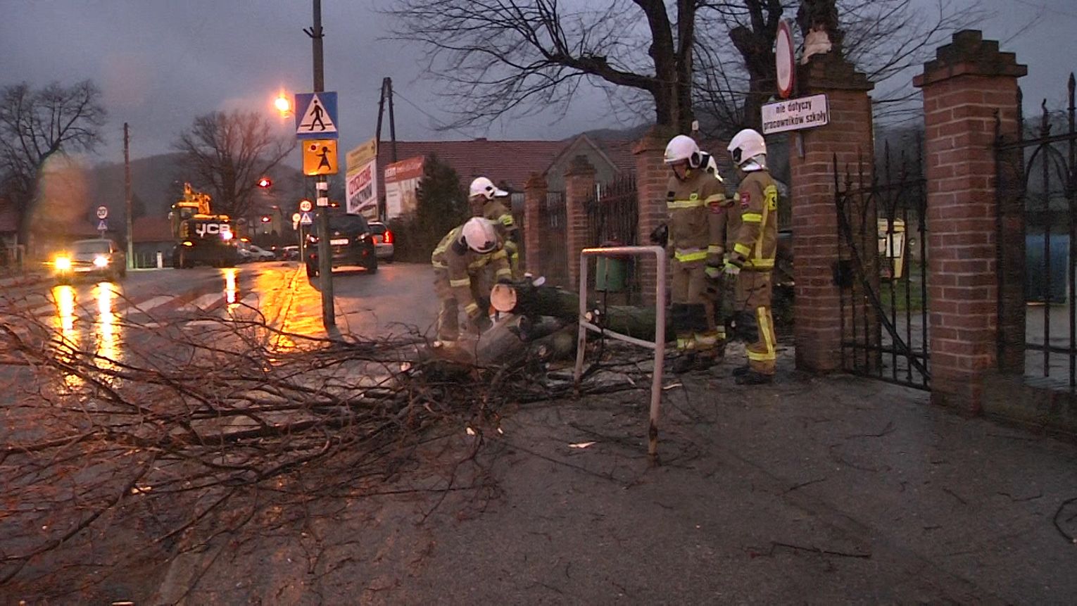 Powalone drzewo blokowało wyjazd ze szkoły w Bielawie