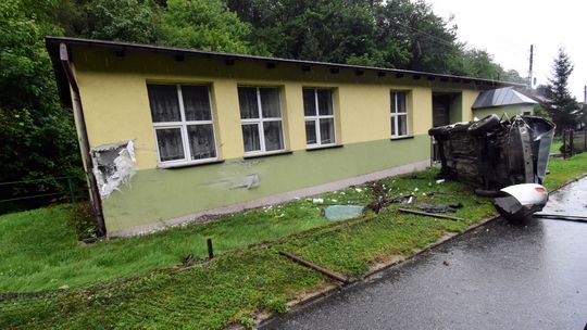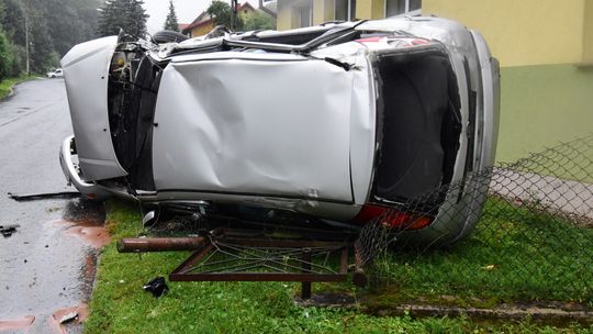 Skosił płot, uderzył w dom i Forda postawił na boku w Bielawie