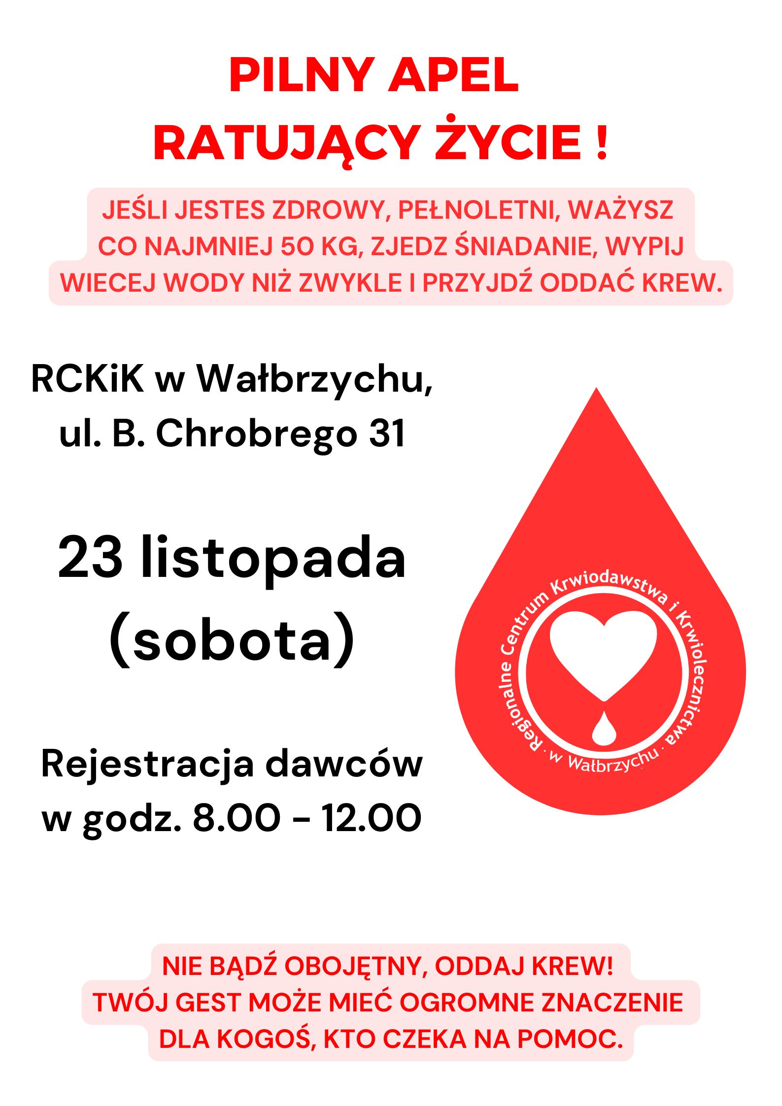 Apelujemy! Nie bądź obojętny, oddaj krew. Twój gest może mieć ogromne znaczenie dla kogoś, kto czeka na pomoc.