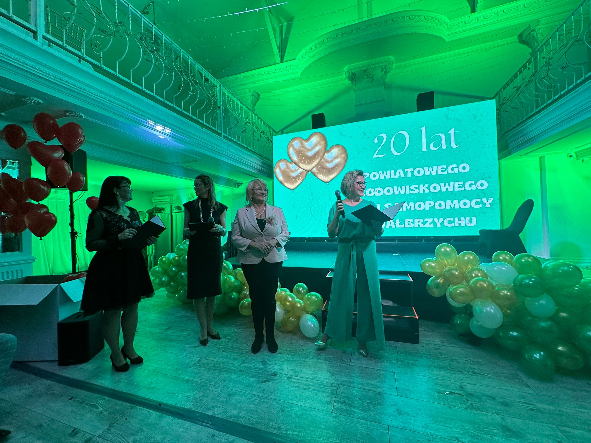 W minioną środę 27 listopada odbyła się jubileuszowa uroczystość, w której oprócz pracowników i uczestników Domu wraz ze swoimi rodzinami wzięli udział zaproszeni goście na co dzień współpracujący z jednostką, m.in. włodarze gmin powiatu wałbrzyskiego, pracownicy jednostek pomocy społecznej oraz osoby współpracujące przy realizacji działań na rzecz osób z niepełnosprawnościami. W podziękowaniu za współpracę goście otrzymali pamiątkowe statuetki. W imieniu Zarządu Powiatu Wałbrzyskiego na ręce Pani Dyrektor Domu Marty Woźniak serdeczne gratulacje oraz życzenia dalszej owocnej i pełnej satysfakcji pracy na rzecz podopiecznych domu przekazali Ewa Dorosz- członek Zarządu, a także pracownicy Starostwa Powiatowego w Wałbrzychu - Sekretarz Powiatu Wioletta Muszyńska i Ryszard Skrobacki- Naczelnik Wydziału Organizacyjnego, Promocji i Oświaty.