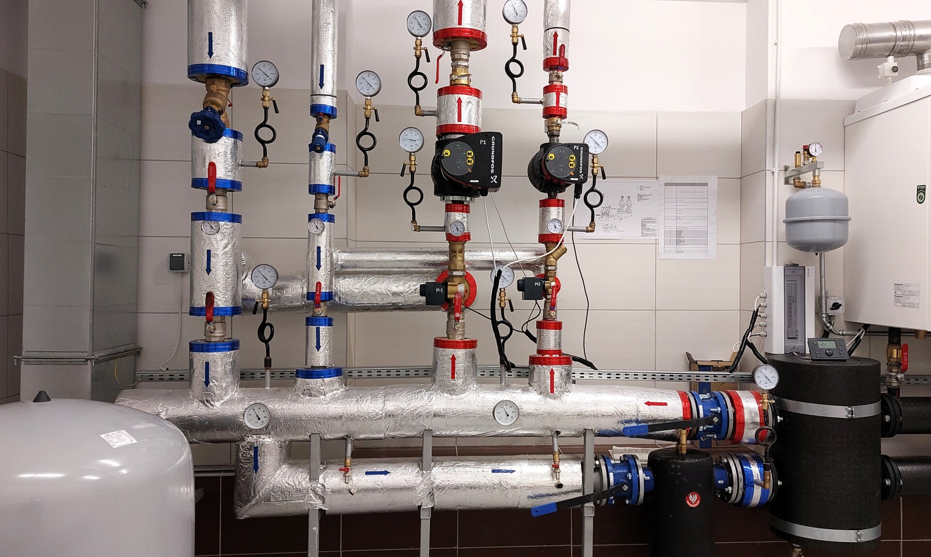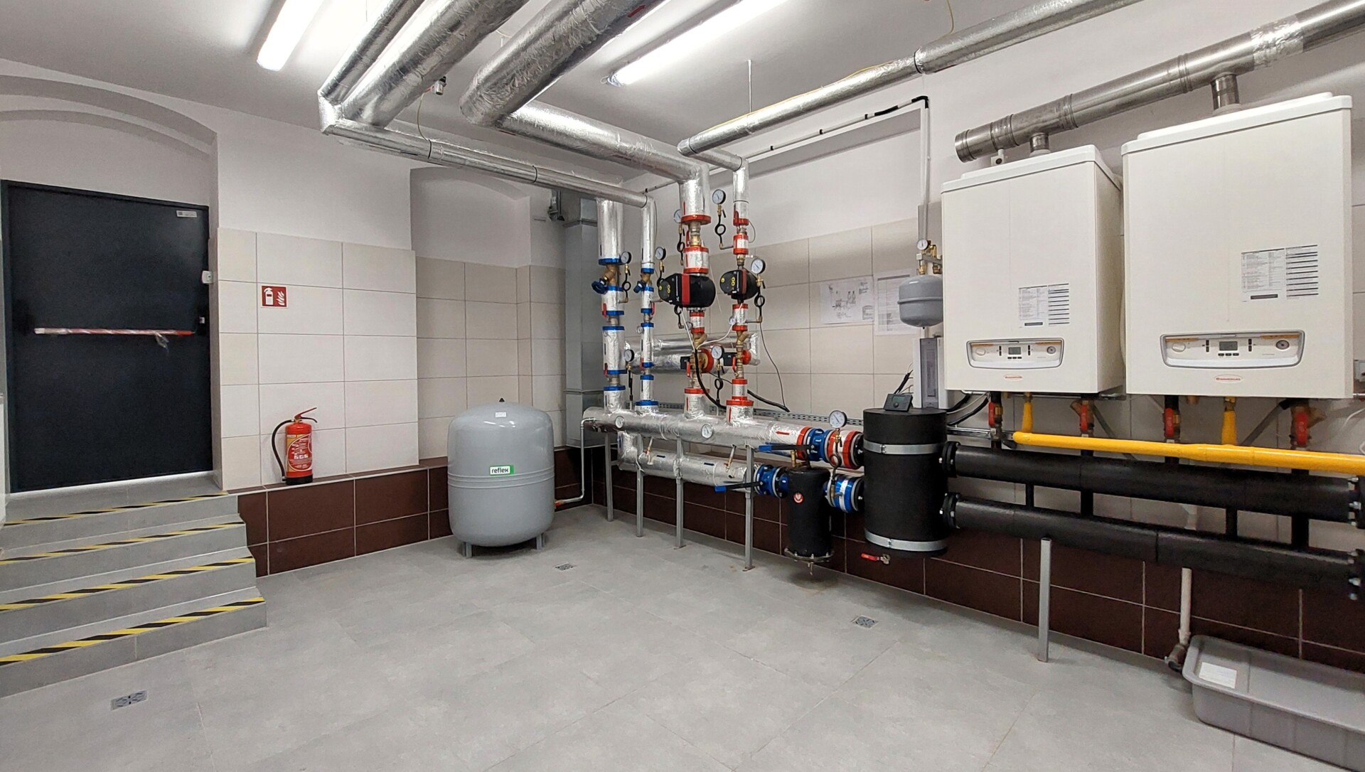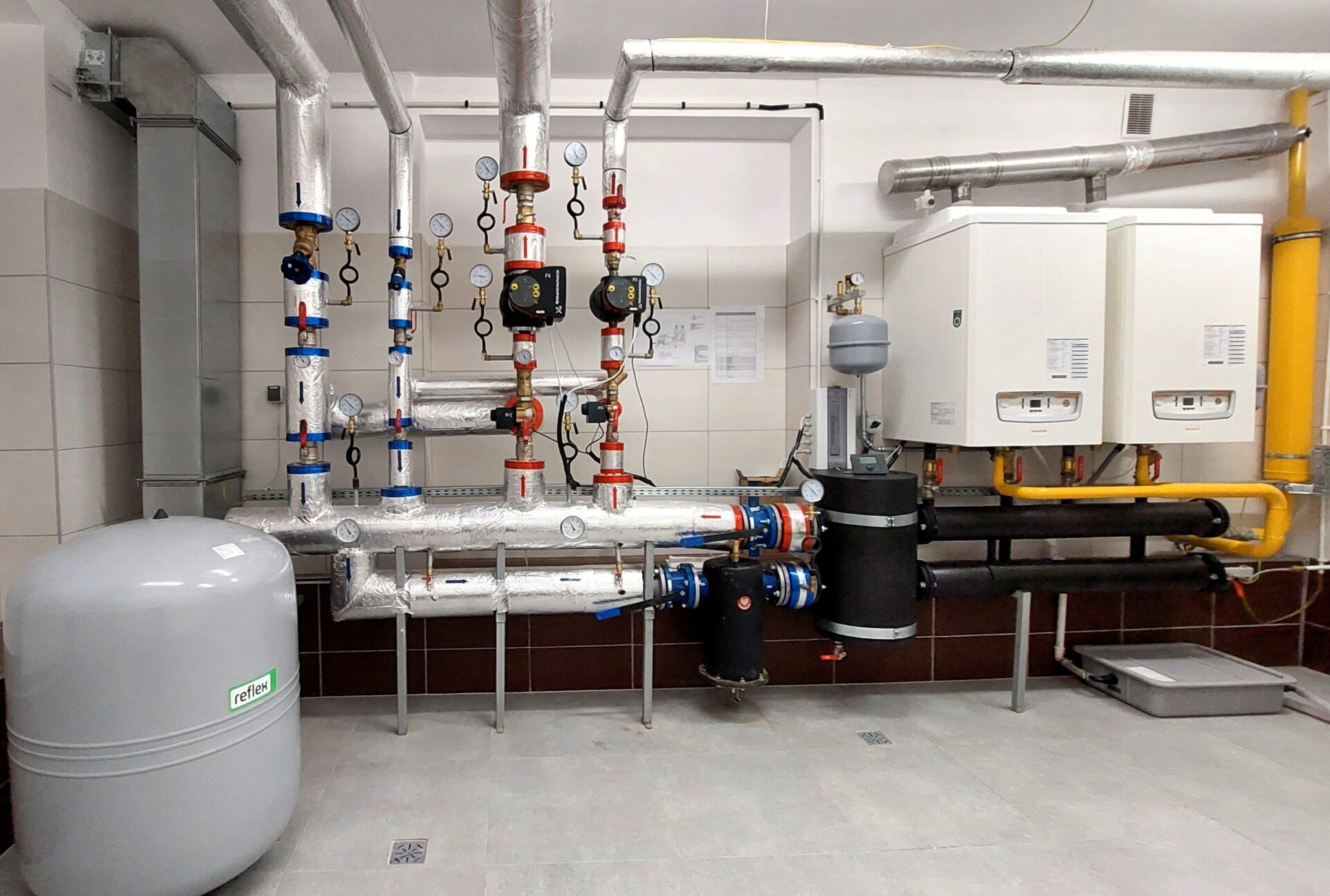 - montaż nowych kotłów, pomp obiegowych i systemu spalinowego,