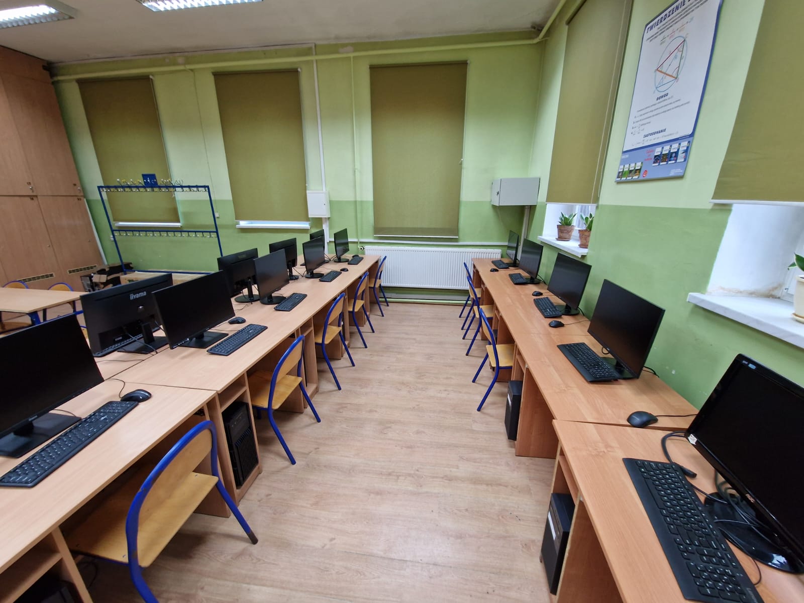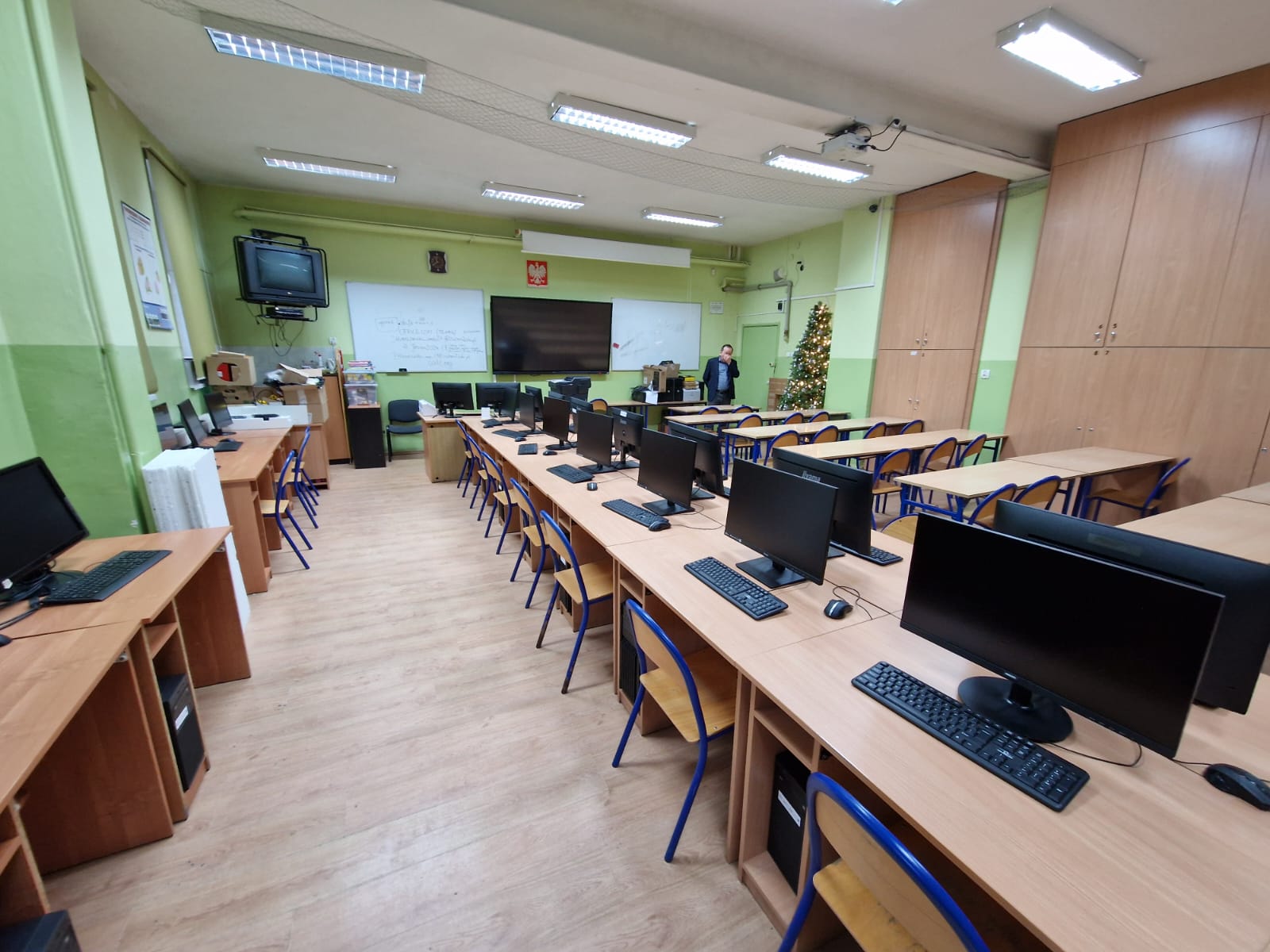 W pomieszczeniach wyeksploatowanego gabinetu dydaktycznego i jego zaplecza zaaranżowano nowoczesną pracownię informatyczną. Część budowlana została zakończona. W kompleksowym remoncie polegającym m.in. na wykonaniu gładzi ściennych i sufitowych, wymianie grzejników centralnego ogrzewania, wymianie instalacji elektrycznej, wykonaniu instalacji LAN, wykonaniu zabudowy wnęki szafą przesuwną, zastosowano także rozwiązania dotyczące edukacji włączającej dla osób z niepełnosprawnościami i specjalnymi potrzebami edukacyjnymi, poprzez zaprojektowanie stacji komputerowych tak, aby były dostępne dla osób poruszających się na wózkach inwalidzkich.