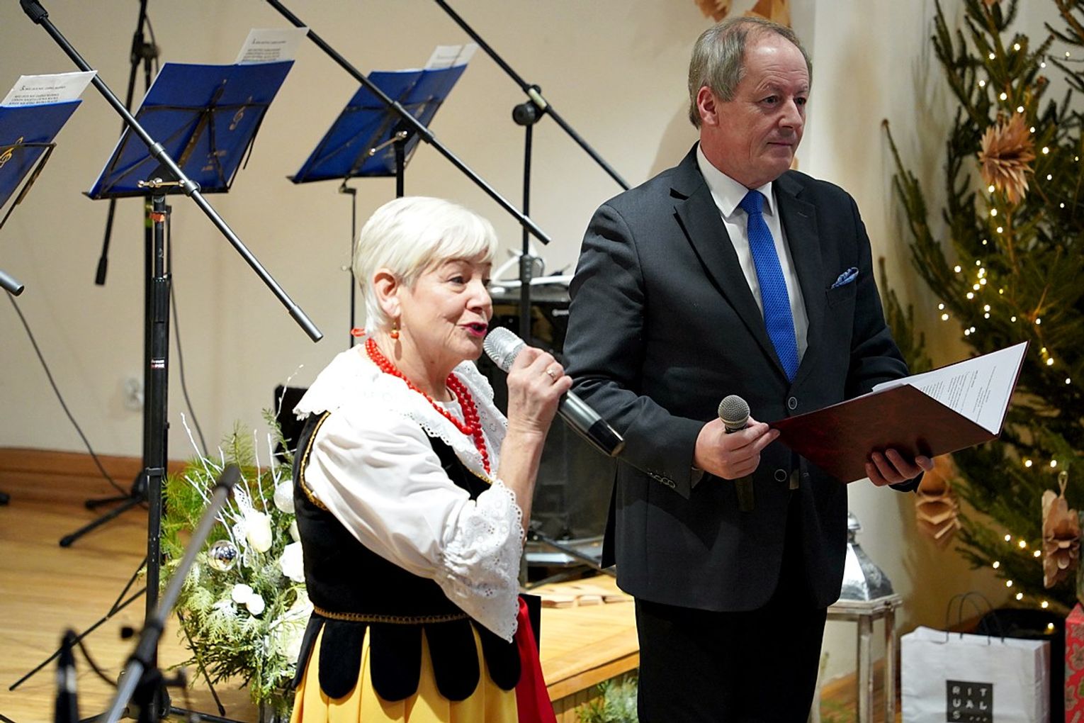 Mimo, że najstarsze kolędy mają blisko 300 lat to nadal są chętnie śpiewane. Wzruszające kołysanki, albo wesołe przyśpiewki. Tajemnica ich popularności to jeszcze jeden sekret tej wspaniałej cichej nocy – mówili prowadzący uroczystość: dyrektor GOKSiR Krzysztof Jas i Halina Wiśniewska członkini zespołu „Ale Babki”.