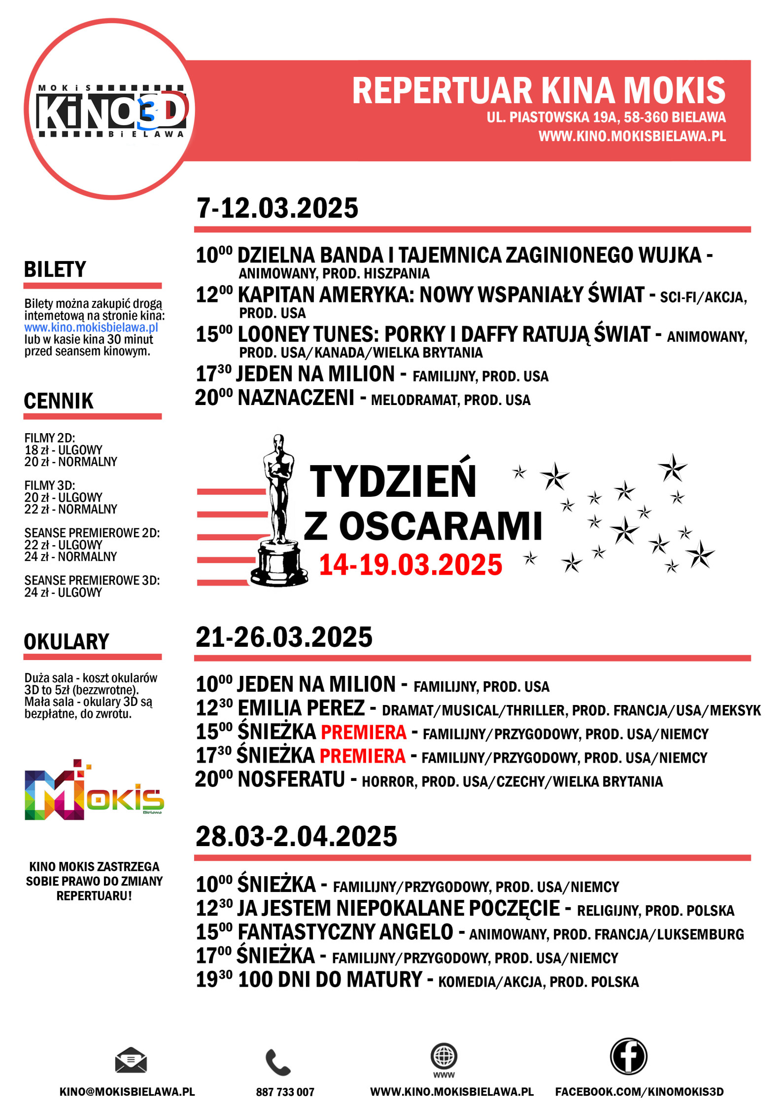 Zapraszamy do odwiedzenia Kina Mokis w Bielawie. Zobacz repertuar i przeżyj z nami Oskarowe emocje.