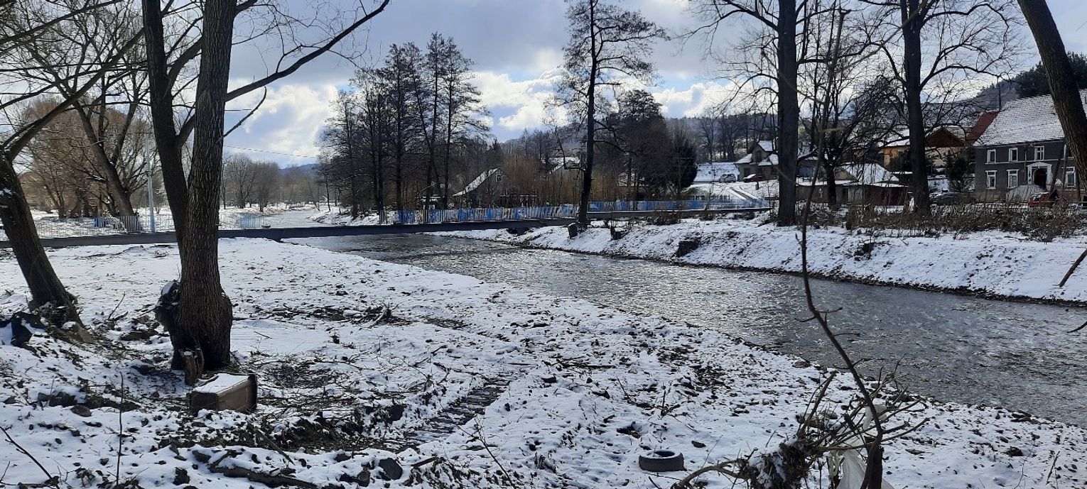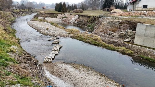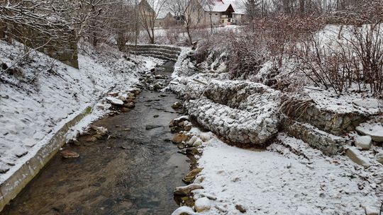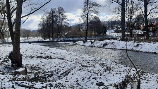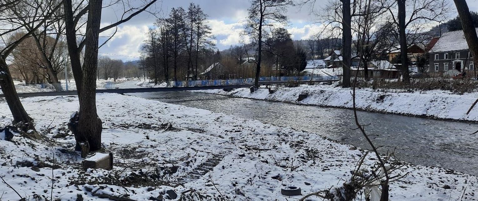 Mimo niekorzystnych warunków pogodowych i ujemnych temperatur na początku tego roku, wykonawca zgodnie z harmonogramem prowadzi prace przy zabezpieczaniu uszkodzonego suchego zbiornik przeciwpowodziowego w Stroniu Śląskim na potoku Morawka.