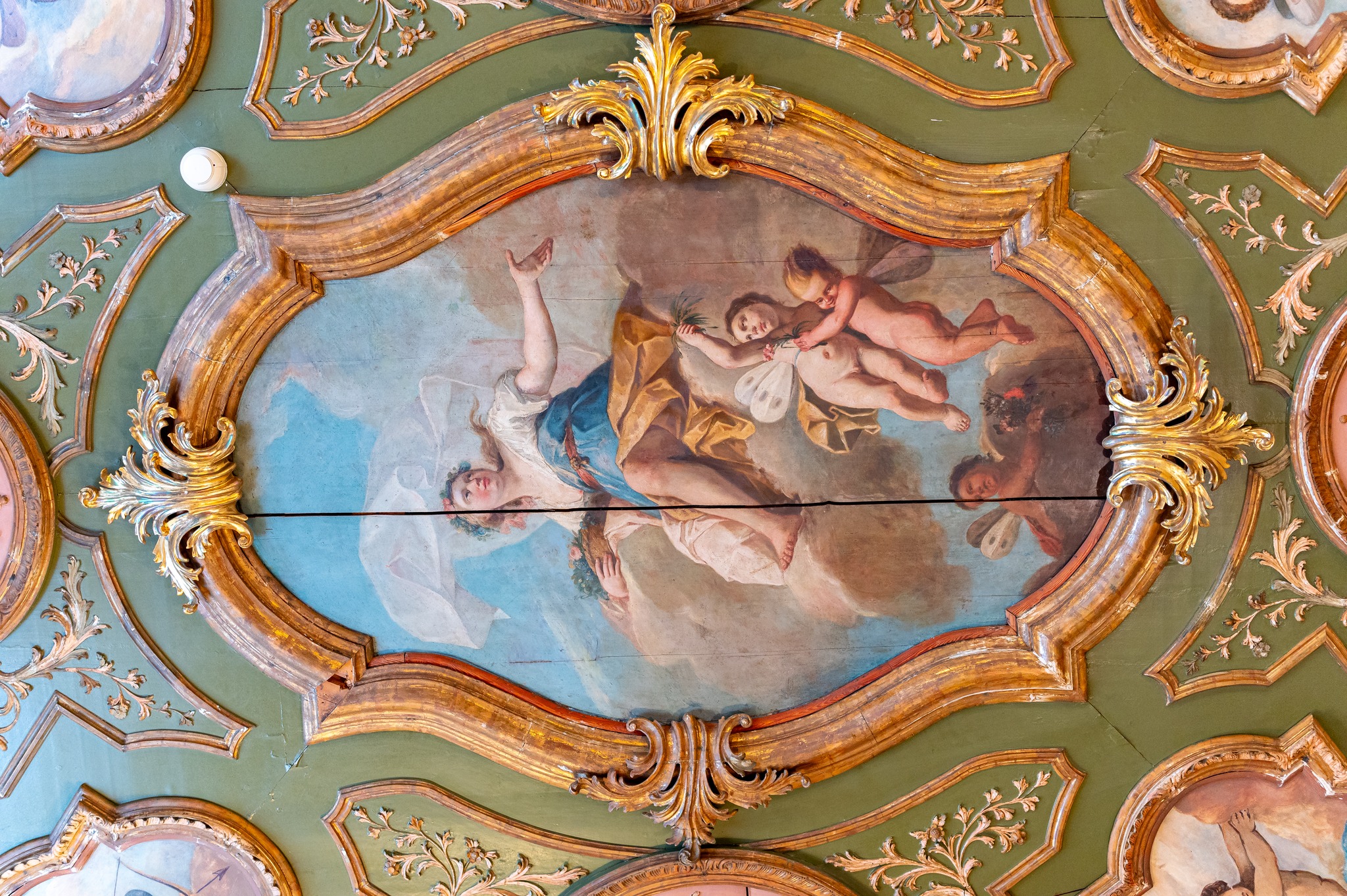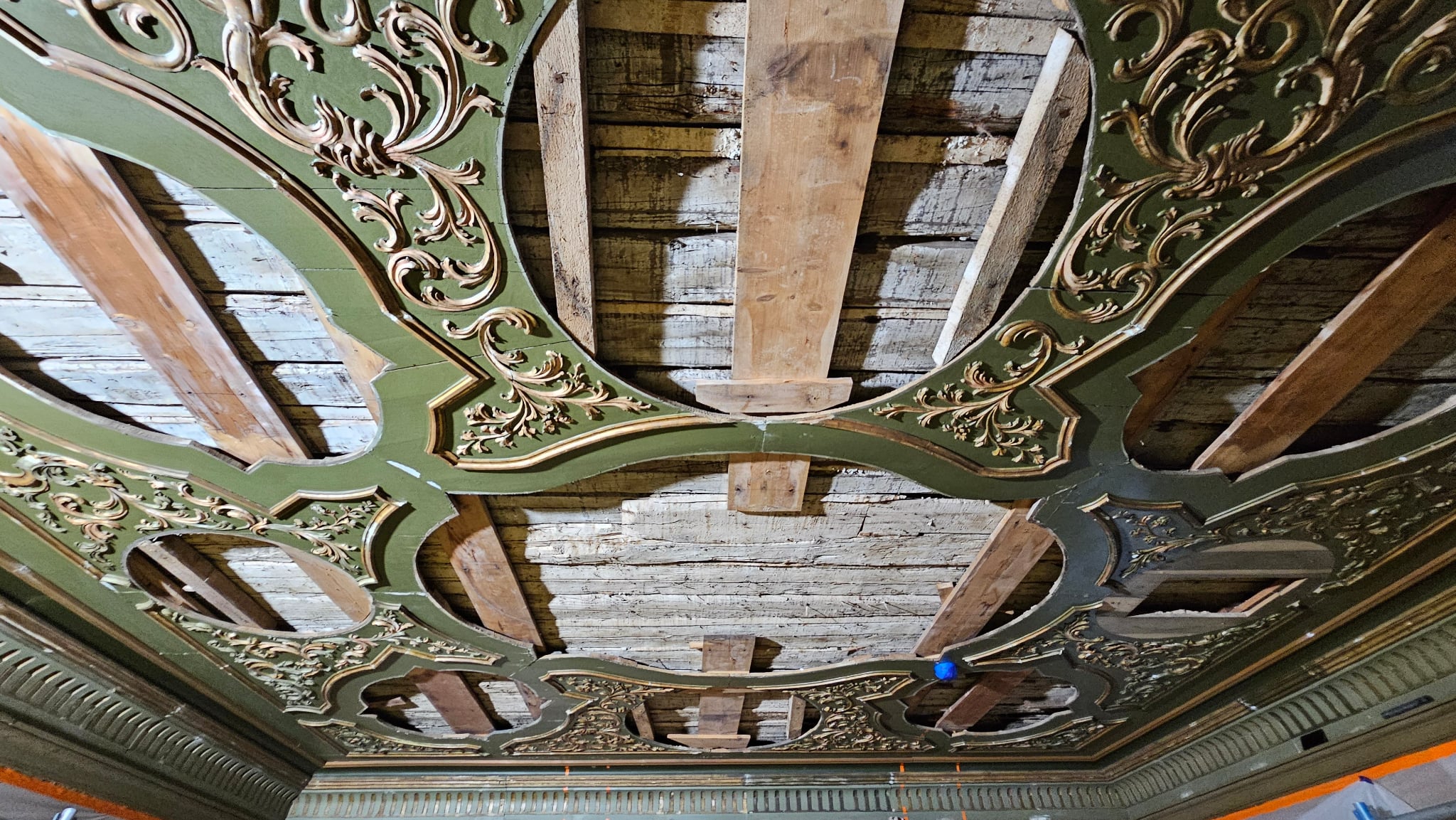 Zachowane w Archiwum Państwowym we Wrocławiu dokumenty wskazywały, że mógł on być jednym z zakupów poczynionych przez Hochbergów w północnych Włoszech, podobnie jak renesansowe kominki. Nie byliśmy jednak pewni, czy strop był rzeczywiście dziełem mistrzów późnego włoskiego baroku, czy jedynie dwudziestowieczną stylizacją.