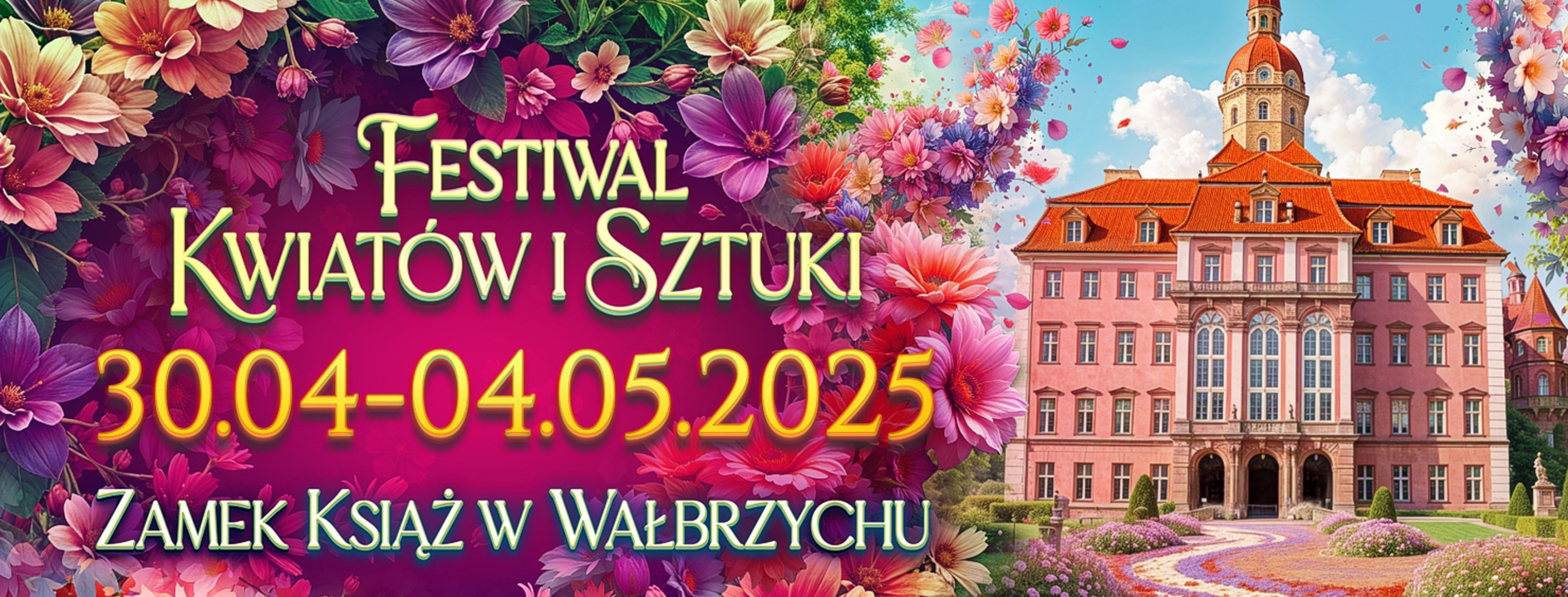Festiwal Kwiatów i Sztuki 2025 to zdecydowanie najbarwniejsze wydarzenie w Zamku Książ. Już po raz XXXV zamieni się on w prawdziwe królestwo kwiatów, a do zamku prowadzić będzie zachwycający kwietny dywan! Podczas tegorocznej edycji Festiwalu Kwiatów i Sztuki w dniach 30 kwietnia – 4 maja, odwiedzający będą mogli podziwiać spektakularne aranżacje florystyczne "Książ Mistrzów" przygotowane przez wyjątkowe zespoły: