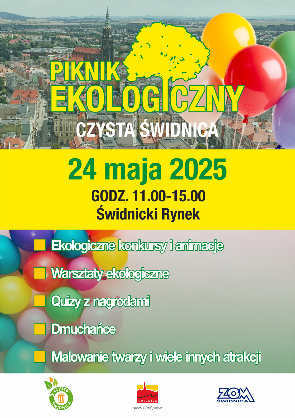 Udział w wydarzeniach jest bezpłatny. Pikniki organizowane są przez Urząd Miejski w Świdnicy we współpracy ze spółkami ENERIS i ZOM Świdnica.