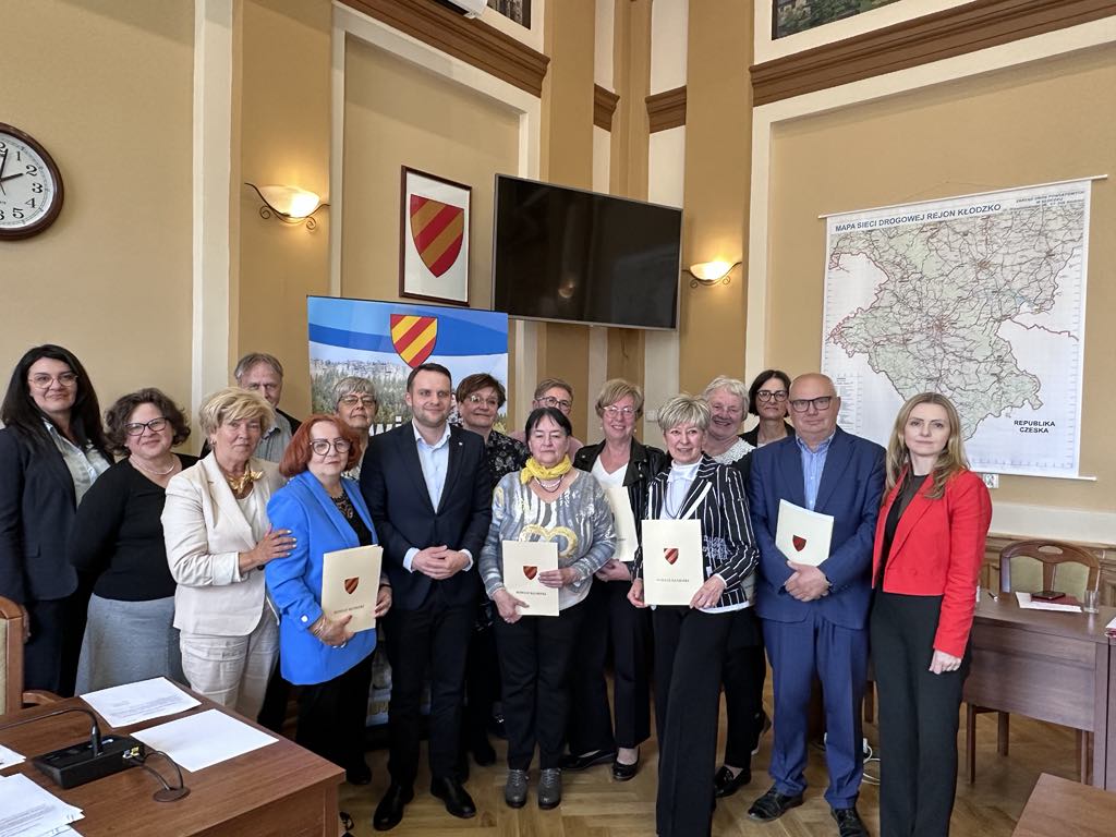 Małgorzata Jędrzejewska-Skrzypczyk - Starosta Kłodzki wraz ze Zbigniew Łopusiewicz – Przewodniczącym Rady Powiatu oraz Piotrem Marchewką #Marchewka – Wicestarostą Kłodzkim,