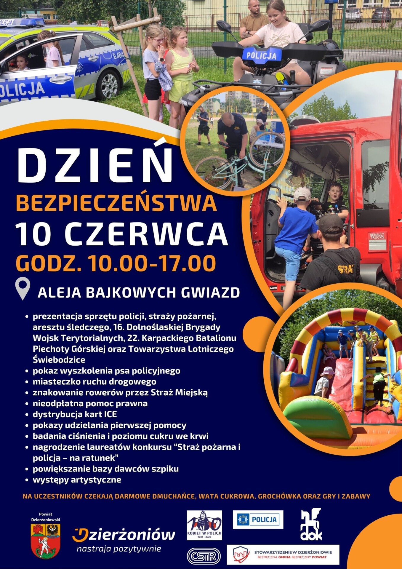 Jak co roku największym zainteresowaniem cieszyć się będą widowiskowe prezentacje służb ratunkowych. Uczestnicy będą mieli okazję z bliska zobaczyć sprzęt używany na co dzień przez policję, straż pożarną, Dolnośląską Brygadę Wojsk Terytorialnych, 22. Karpacki Batalion Piechoty Górskiej, a także Towarzystwo Lotnicze ze Świebodzic. To niepowtarzalna okazja, by porozmawiać z funkcjonariuszami i żołnierzami, a także zasiąść za kierownicą specjalistycznych pojazdów. Organizatorem projektu jest Starosta Dzierżoniowski, Burmistrz miasta Dzierżoniów oraz Komendant Powiatowy Policji w Dzierżoniowie.