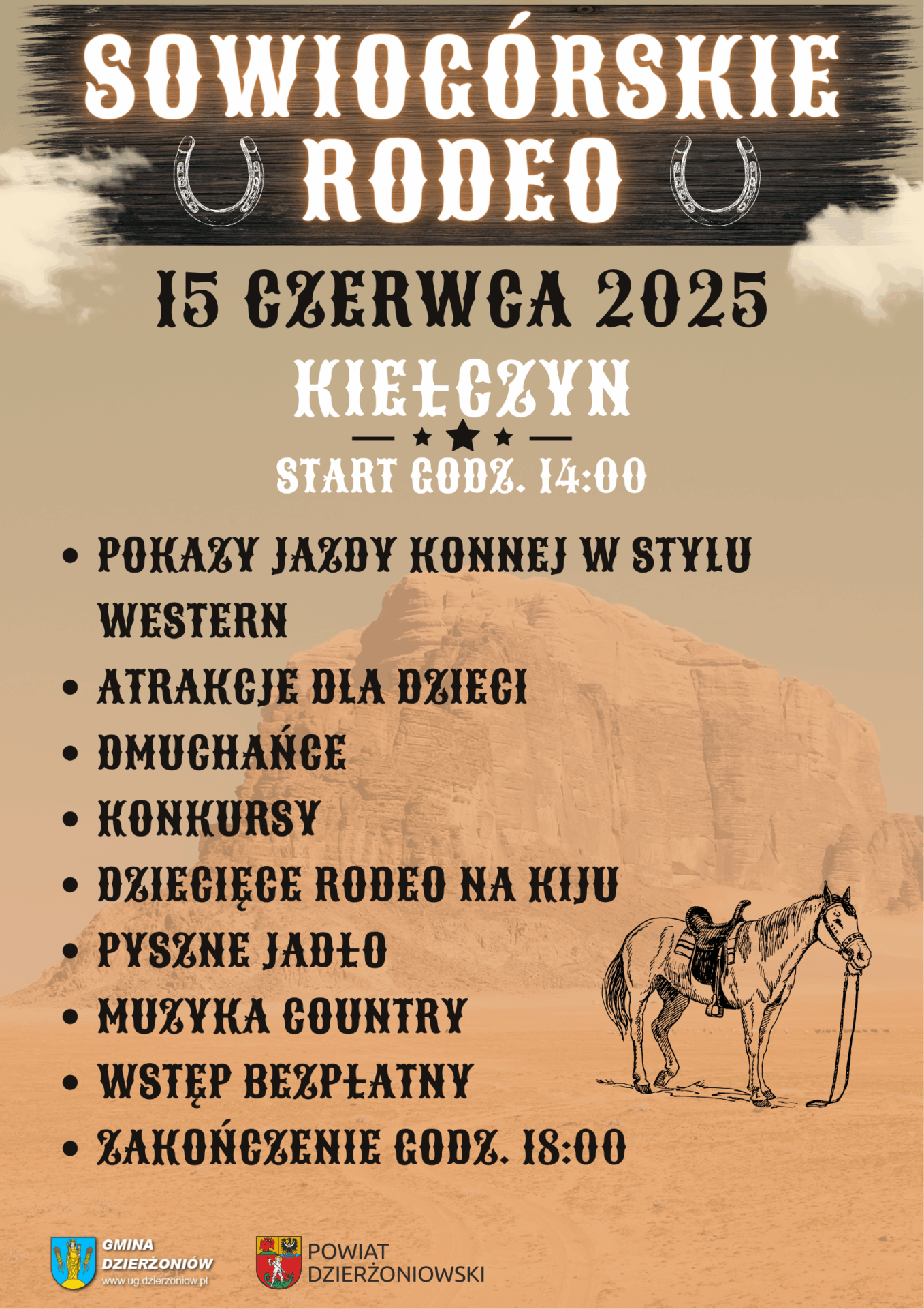 Już w niedzielę 15 czerwca na terenie boiska w Kiełczynie na uczestników czeka pełen atrakcji program: od profesjonalnych pokazów czołowych zawodników western, po emocjonujące konkursy dla dzieci i dorosłych, pyszne potrawy oraz muzykę country.
