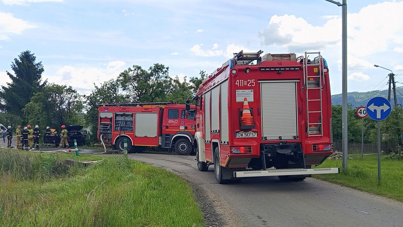 Pożar Audi po uderzeniu w płot w Ostroszowicach