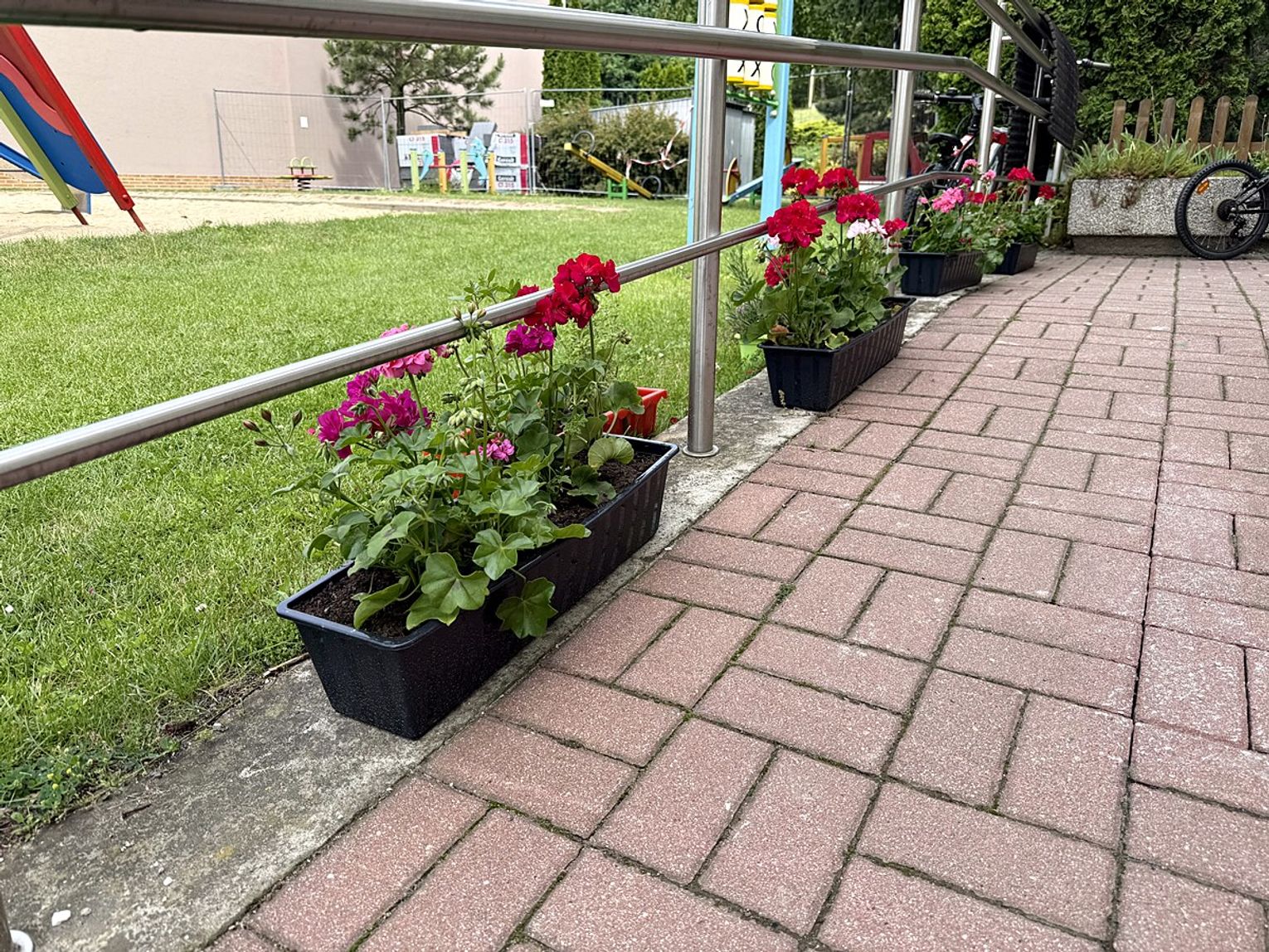 Efekty wspólnej pracy można podziwiać przy wejściu do budynku przedszkolnego, gdzie ustawione zostały pięknie udekorowane skrzynie z nasadzeniami. Zielone kompozycje nie tylko zdobią przestrzeń wokół przedszkola, ale również przypominają dzieciom o ich roli jako małych opiekunów przyrody.
