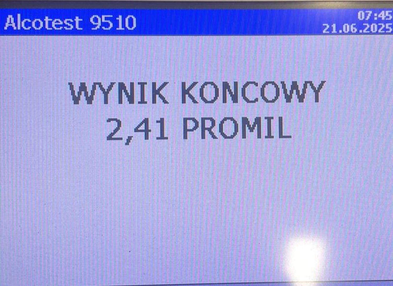 w stanie nietrzeźwości. Badanie wykazało 1,09 mg/l alkoholu w wydychanym powietrzu.