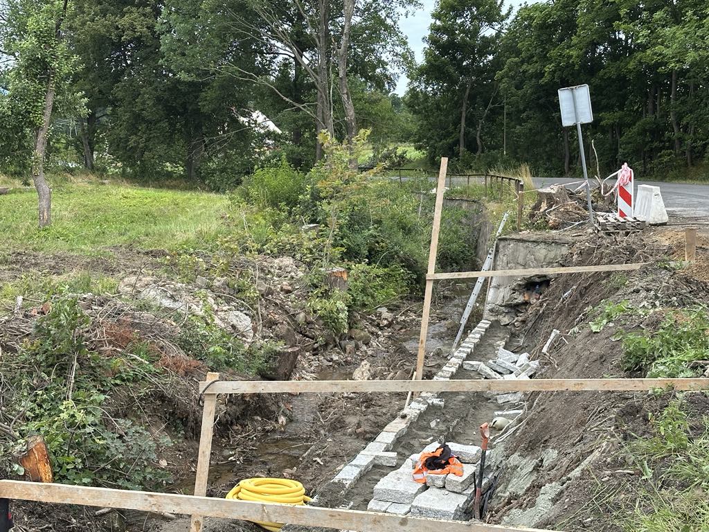 W Gajniku trwa również odbudowa muru oporowego na rzece Goworówka.