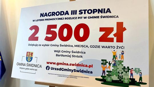 Jeszcze raz dziękujemy wszystkim uczestnikom za udział w loterii promocyjnej „ROZLICZ PIT W GMINIE ŚWIDNICA”. Zachęcamy do śledzenia naszej strony, gdzie wkrótce pojawią się szczegóły kolejnych inicjatyw i wydarzeń.