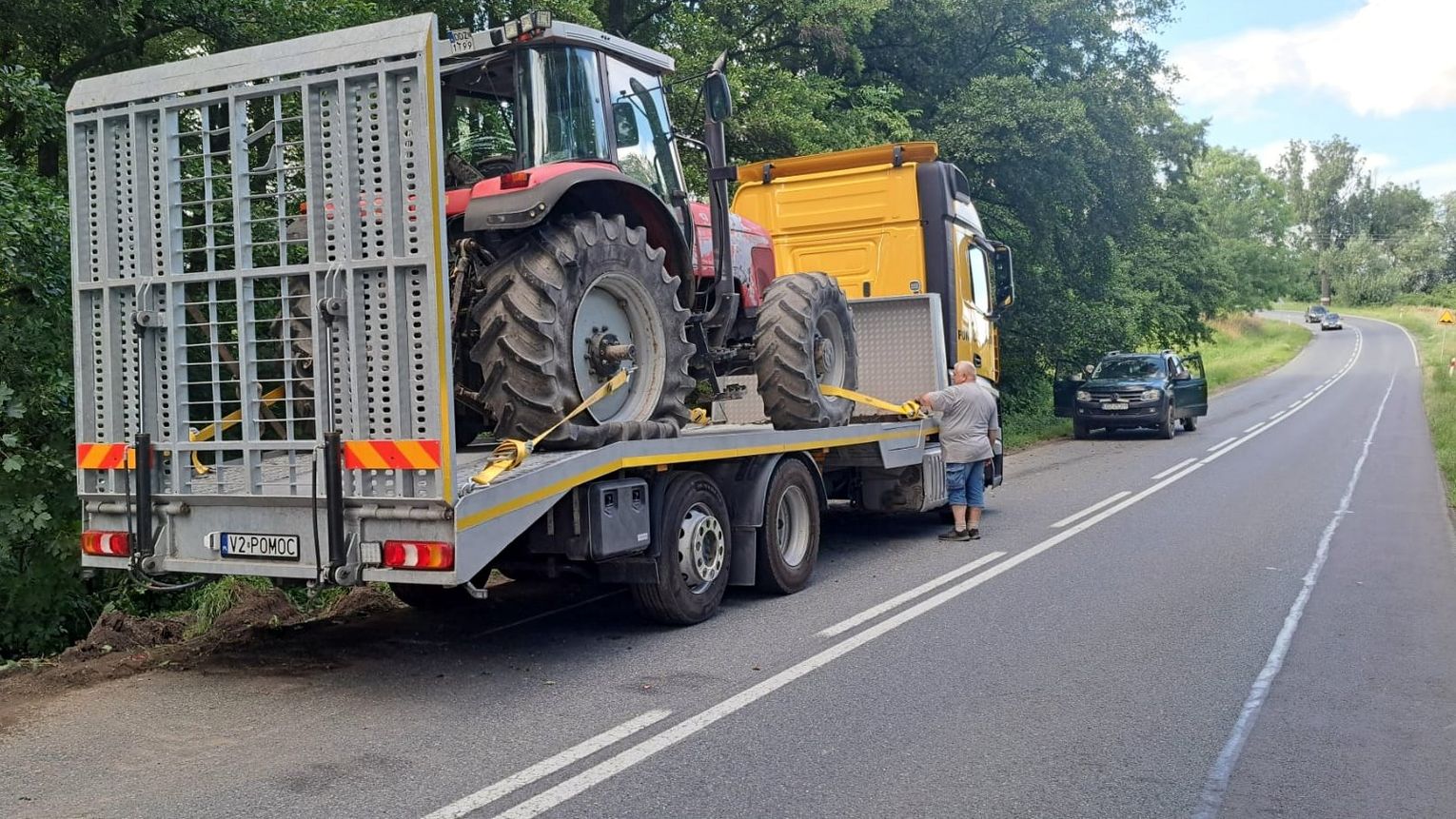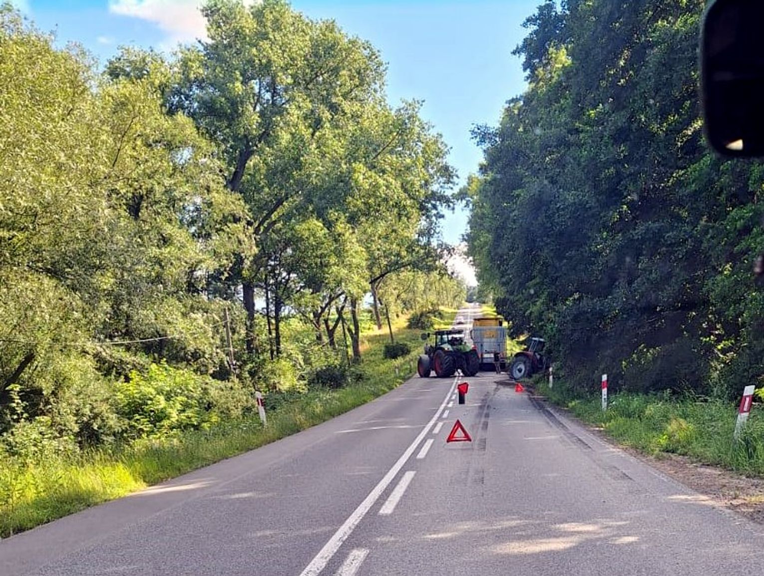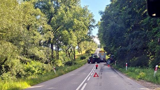 Na miejscu funkcjonariusze ustalili, że 36-letni kierujący poruszał się ciągnikiem rolniczym z przyczepą, kiedy w wyniku awarii pojazdu zjechał do przydrożnego rowu. Zdarzenie skutkowało uszkodzeniem ciągnika, nie odnotowano jednak osób poszkodowanych. Sprawa została zakończona na miejscu pouczeniem.
