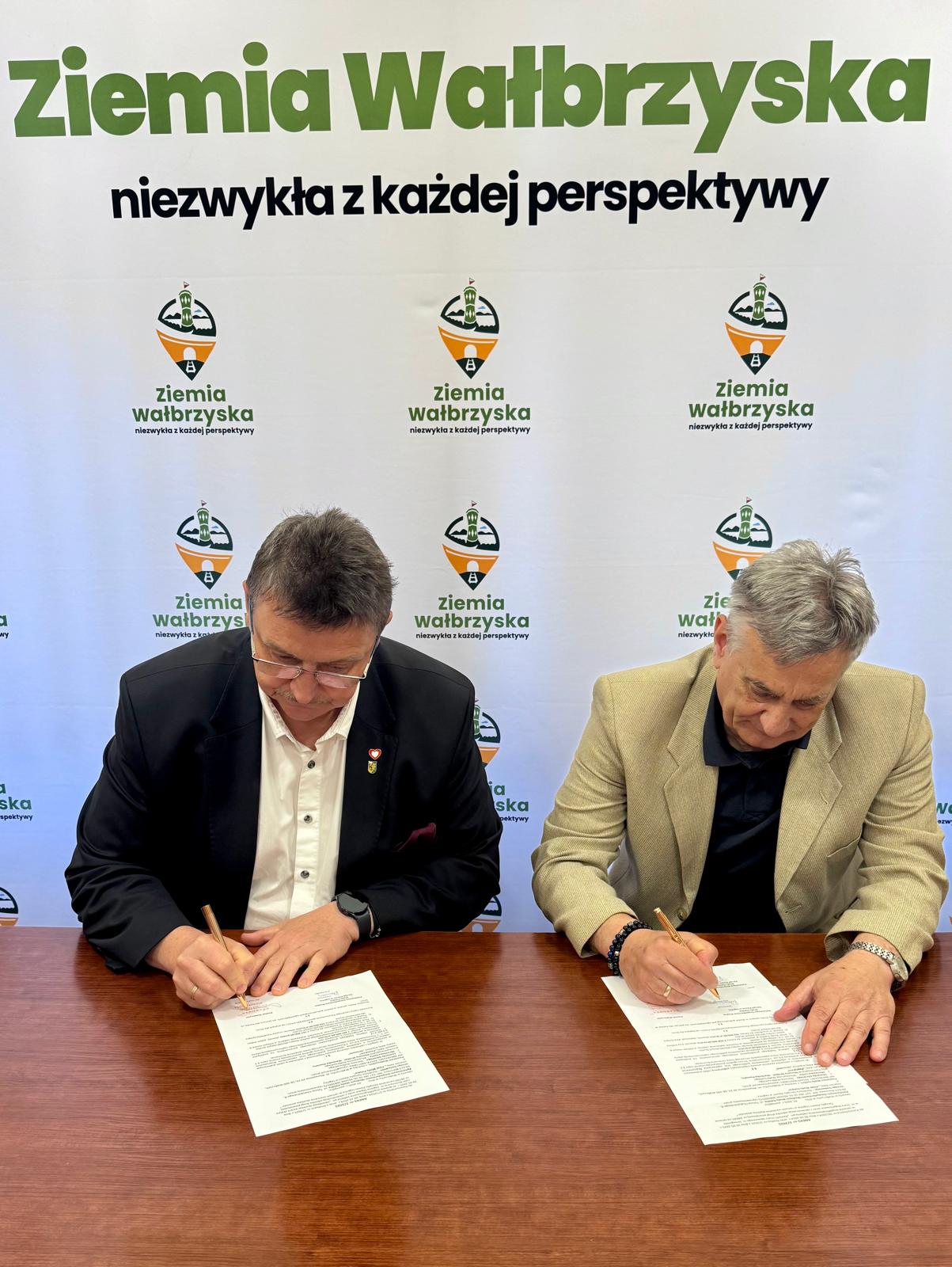 ze strony Powiatu Wałbrzyskiego – Leonard Górski, Starosta oraz Mirosław Lech, Wicestarosta, przy kontrasygnacie Skarbnik Powiatu Marzeny Wróbel.