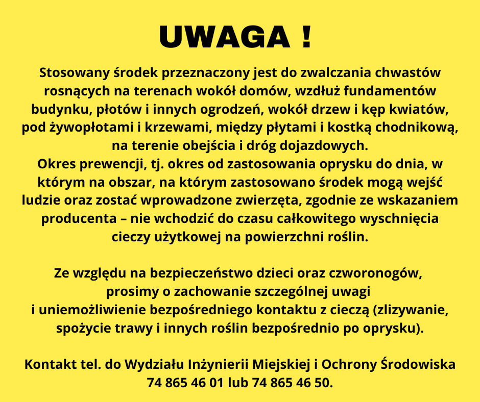 Opryski, rozpiska na ten tydzień i komunikat o używanym środku.
