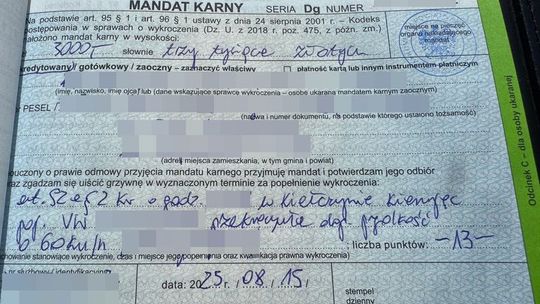 50 – letnia mieszkanka powiatu wałbrzyskiego, która jak ustalono po raz kolejny zignorowała przepisy ruchu drogowego rażąco przekraczając prędkość – w tym przypadku w terenie zabudowanym – straciła na 3 miesiące prawo jazdy. Otrzymała też mandat na kwotę 3 tys. zł. i 13 punktów karnych.