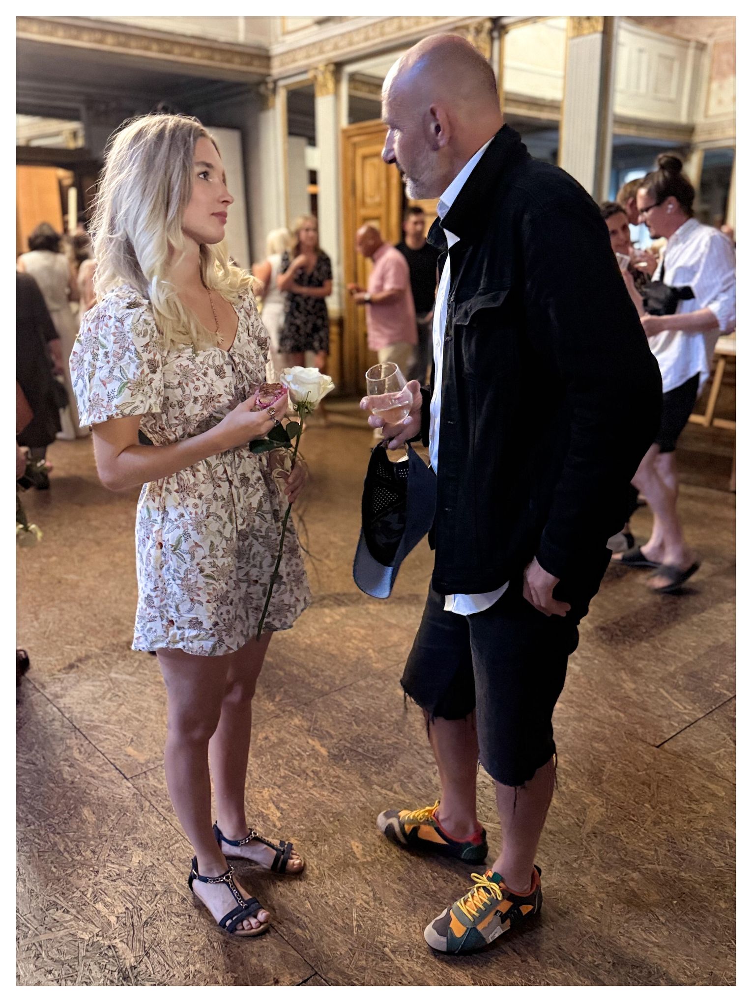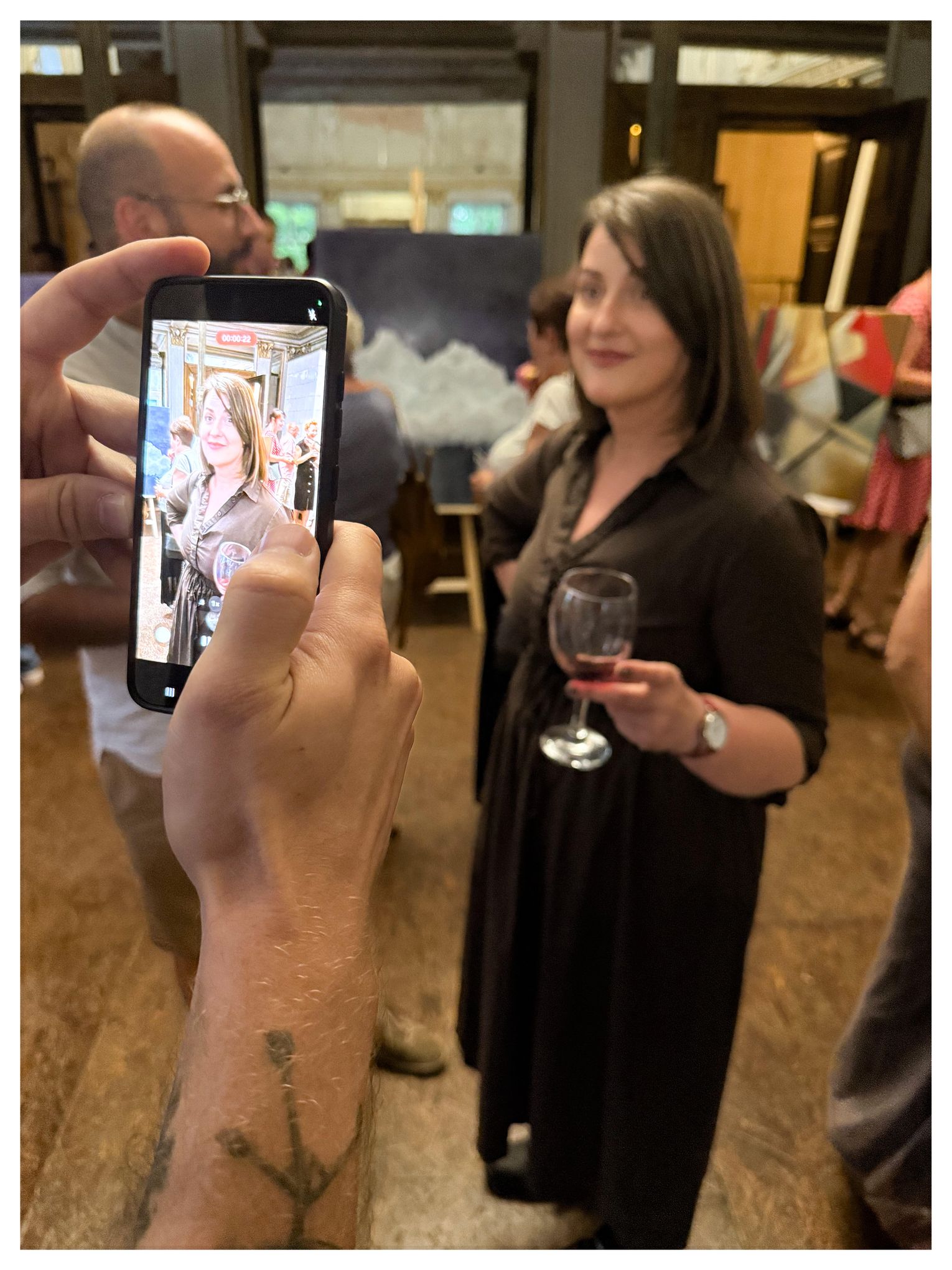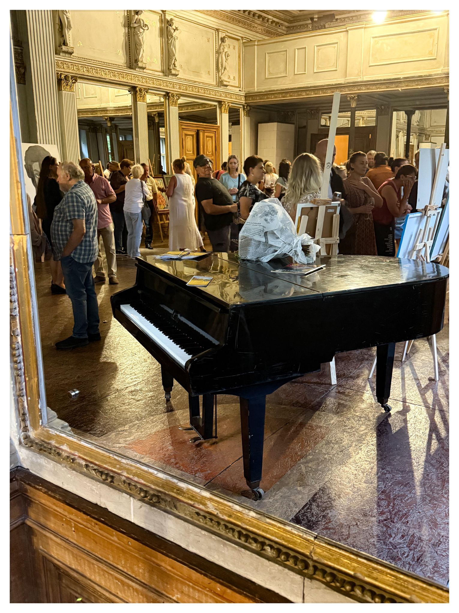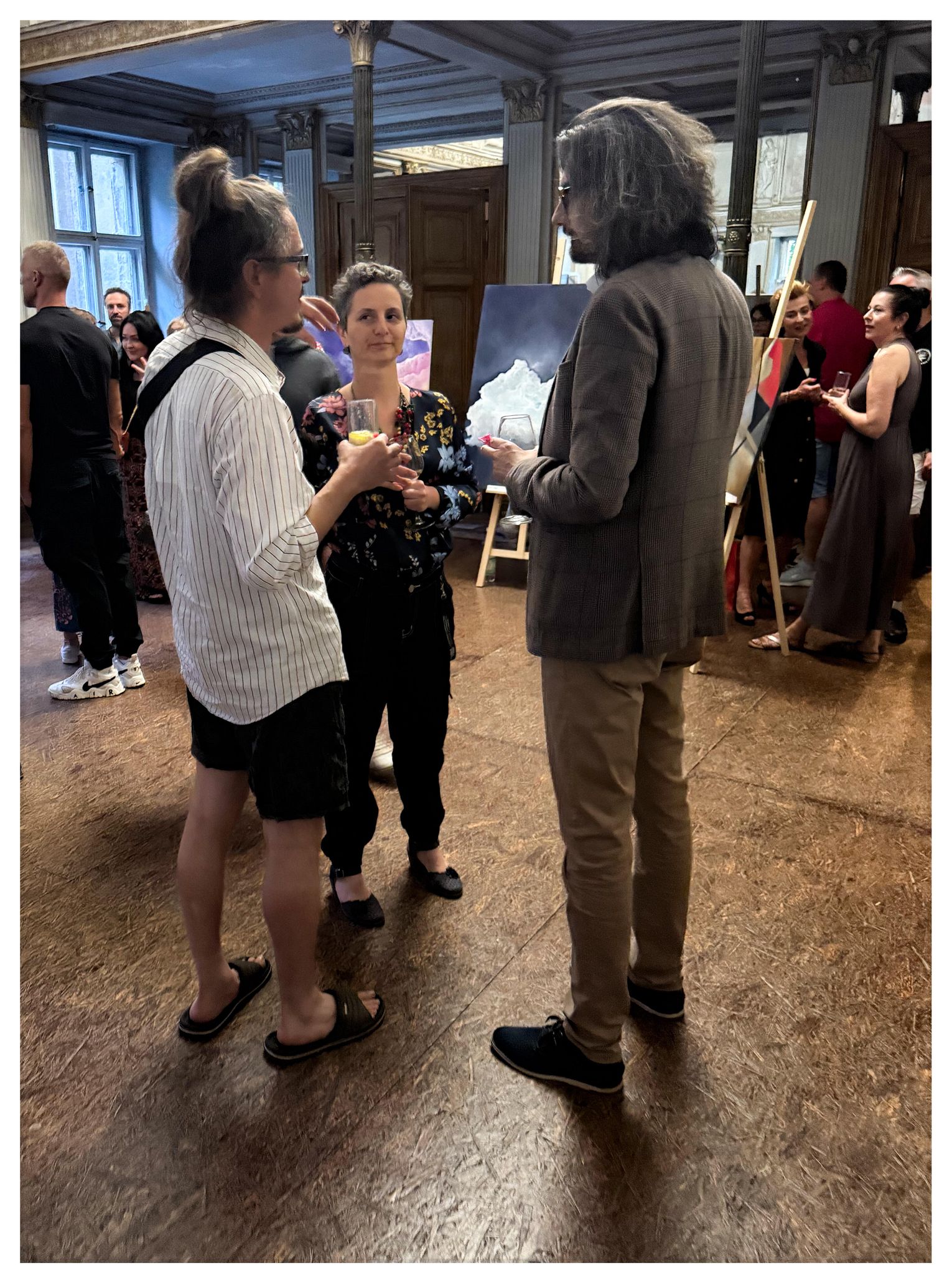 Po pełnym emocji i twórczych rozmów wernisażu na pałacowym dziedzińcu licznie zgromadzona widownia zobaczyła kultowy film w reżyserii Wesa Andersona „Grand Budapest Hotel” z wprowadzeniem w klimat filmu w wykonaniu Marty Człapy i Roberta Delegiewicza.