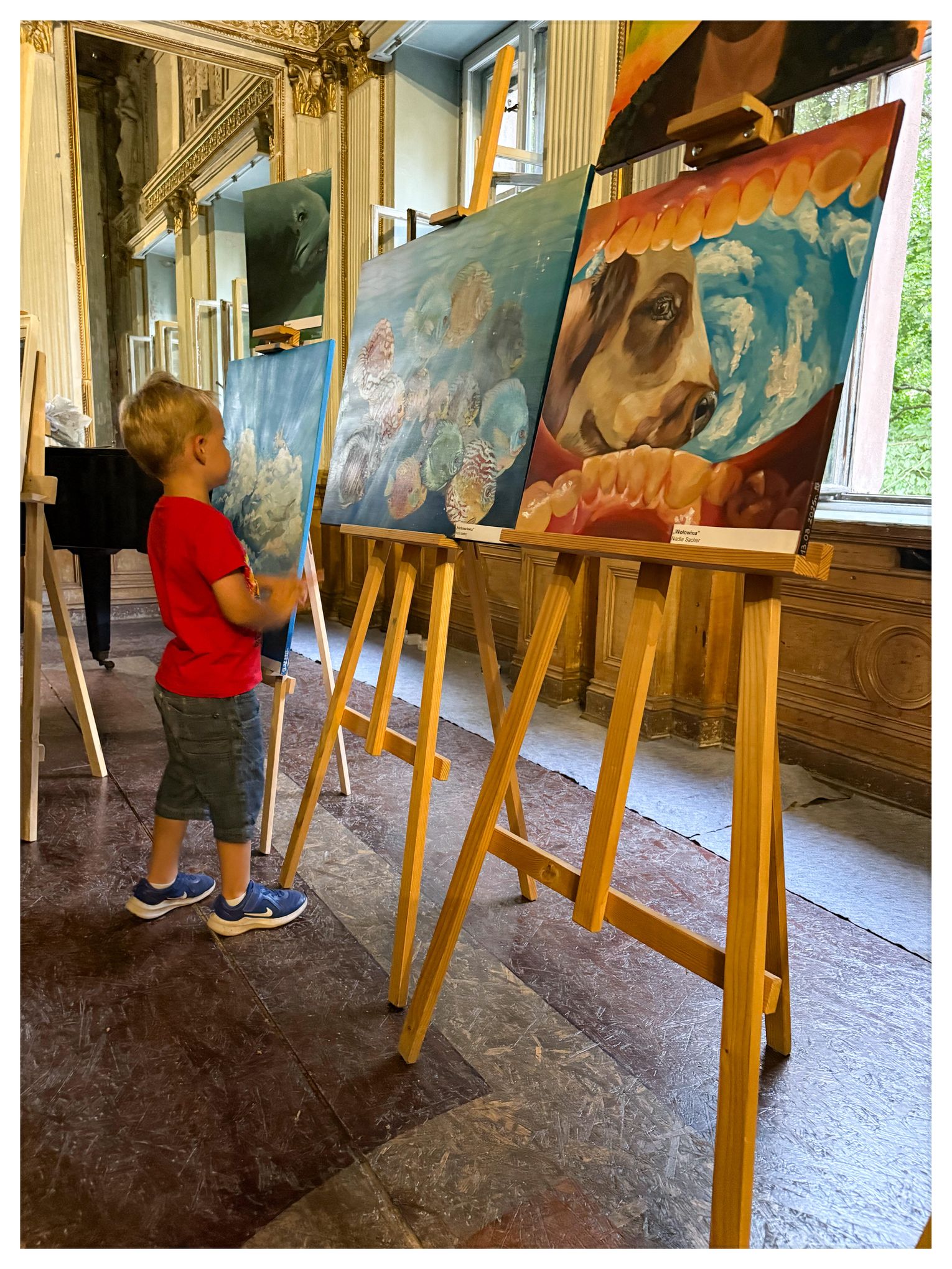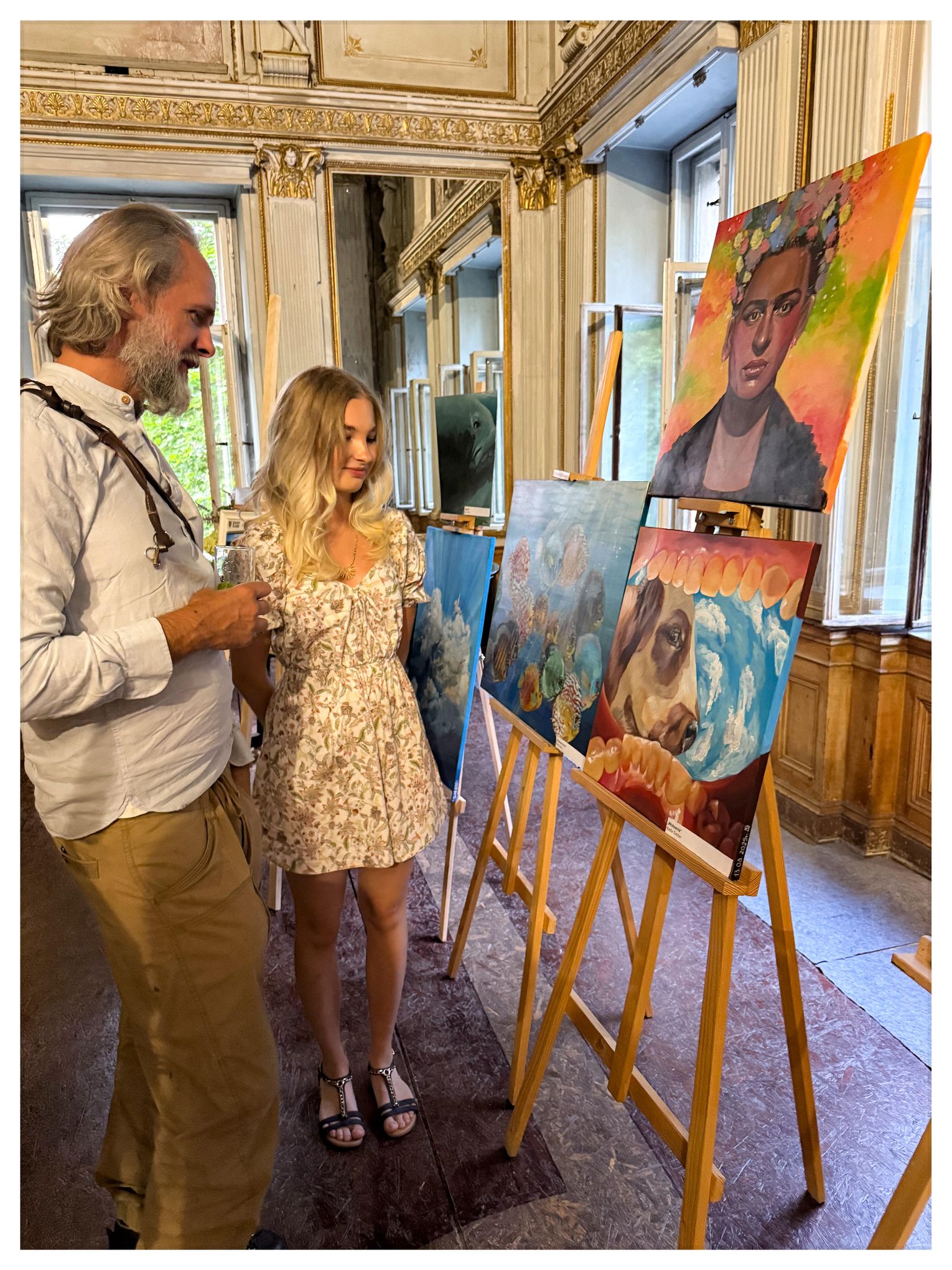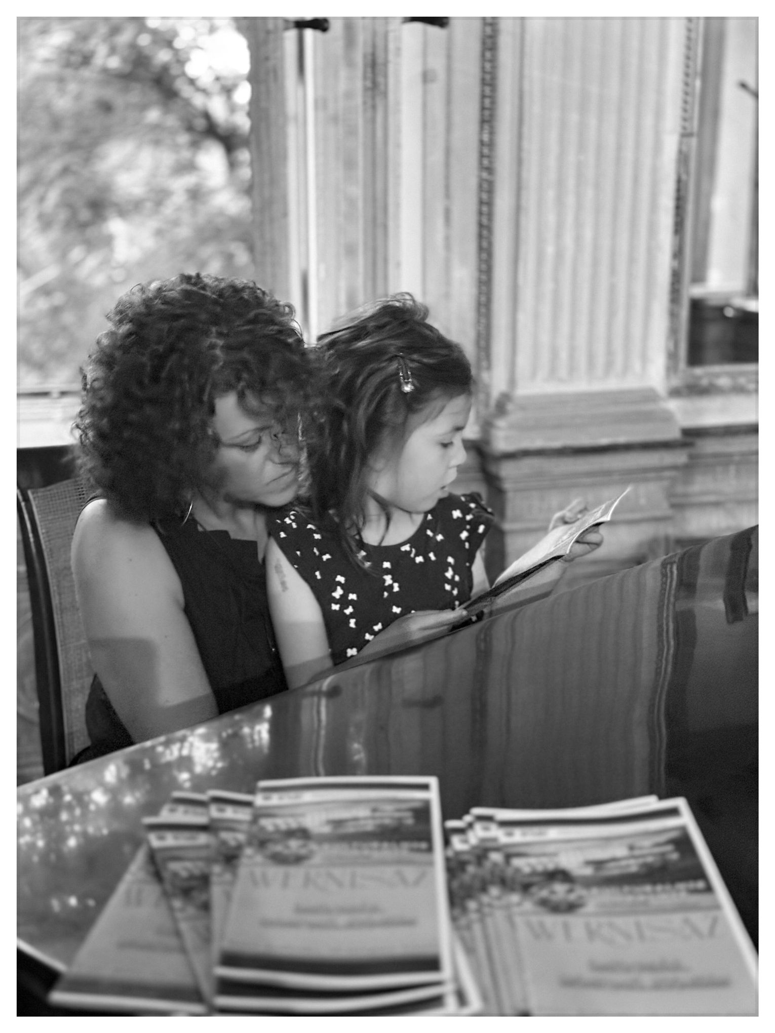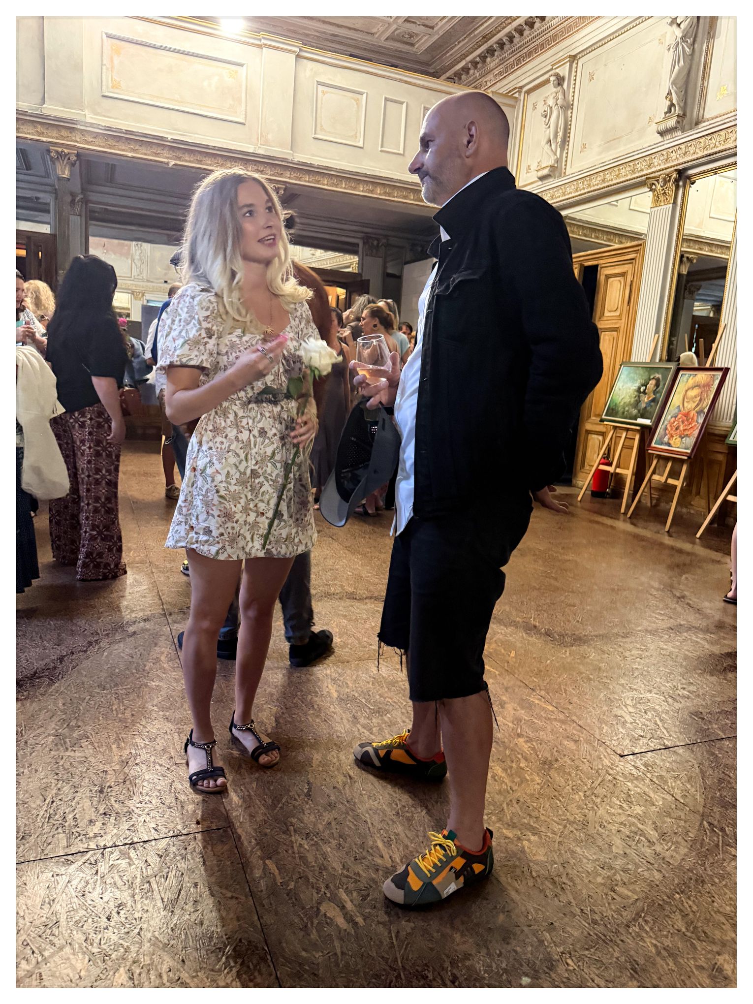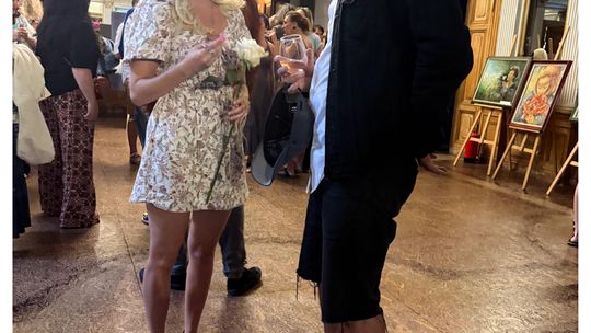 Po pełnym emocji i twórczych rozmów wernisażu na pałacowym dziedzińcu licznie zgromadzona widownia zobaczyła kultowy film w reżyserii Wesa Andersona „Grand Budapest Hotel” z wprowadzeniem w klimat filmu w wykonaniu Marty Człapy i Roberta Delegiewicza.