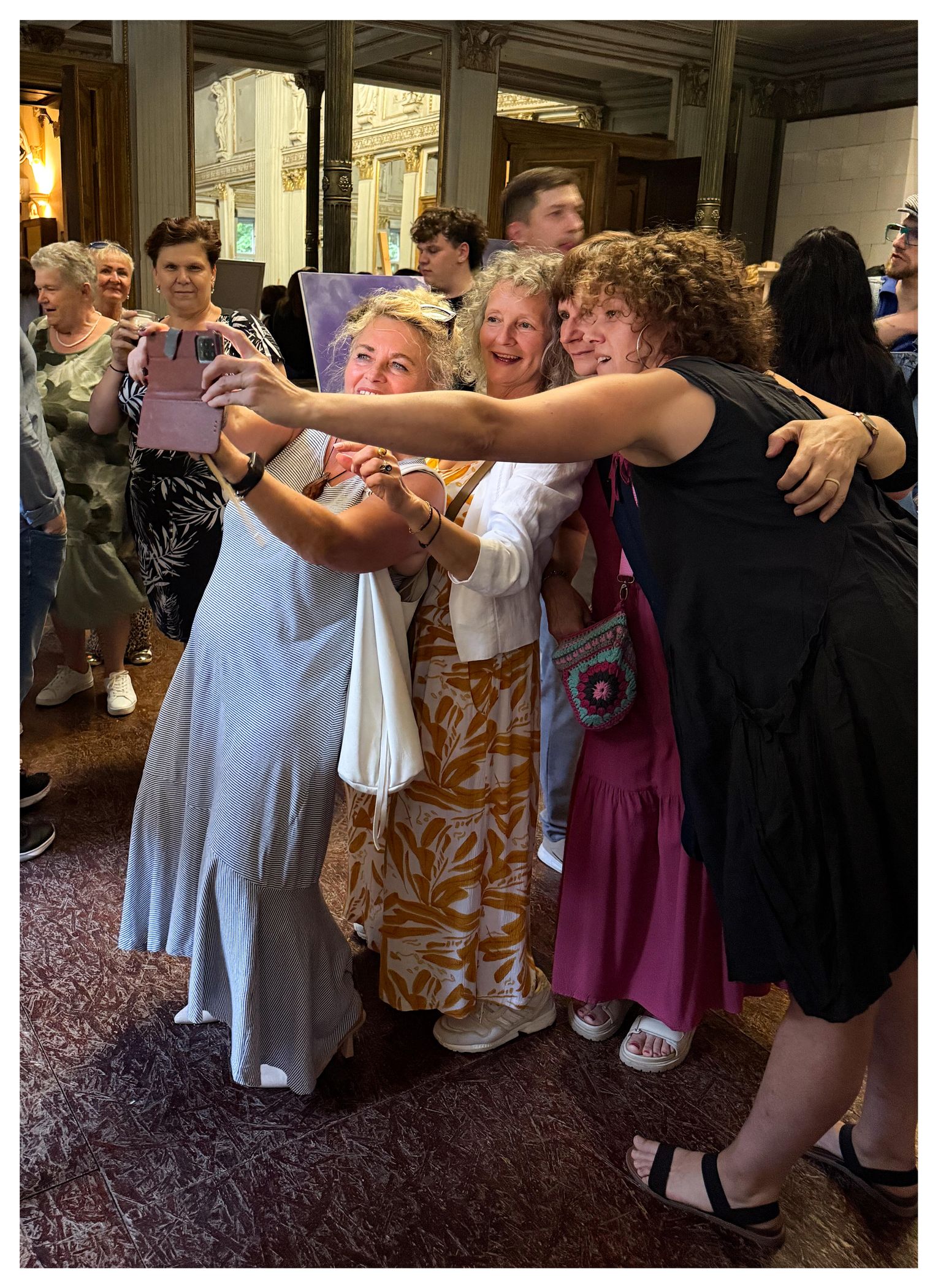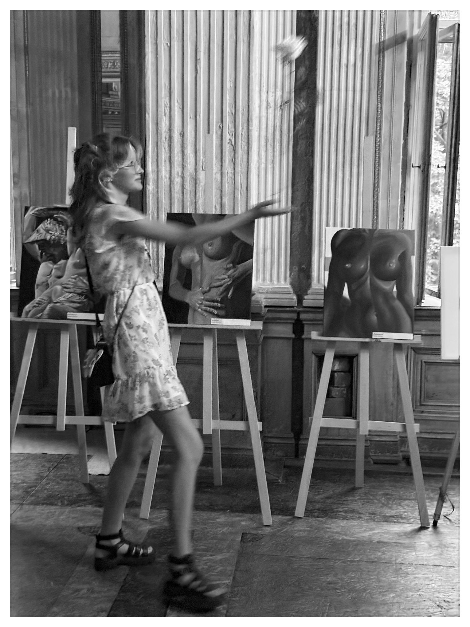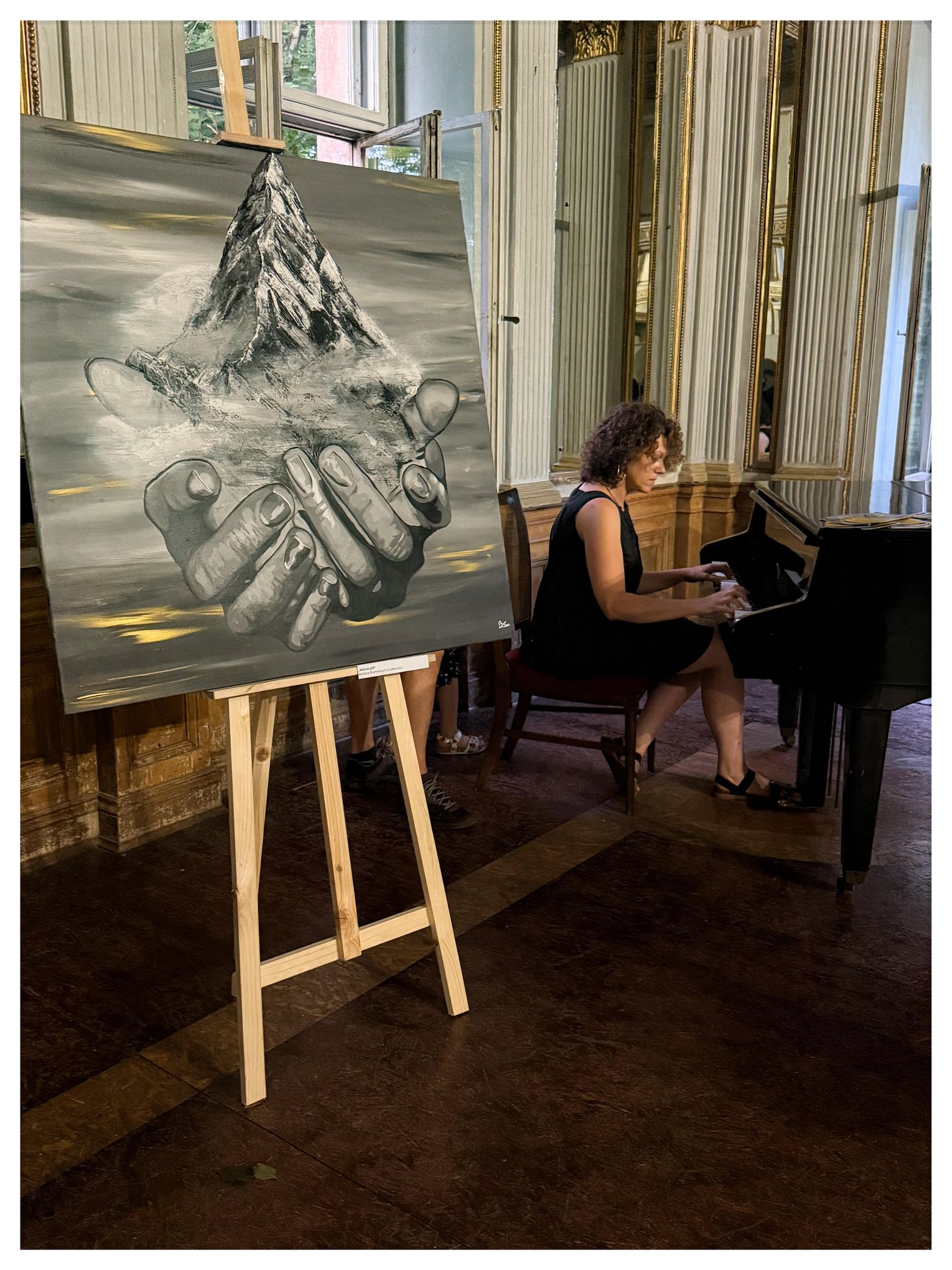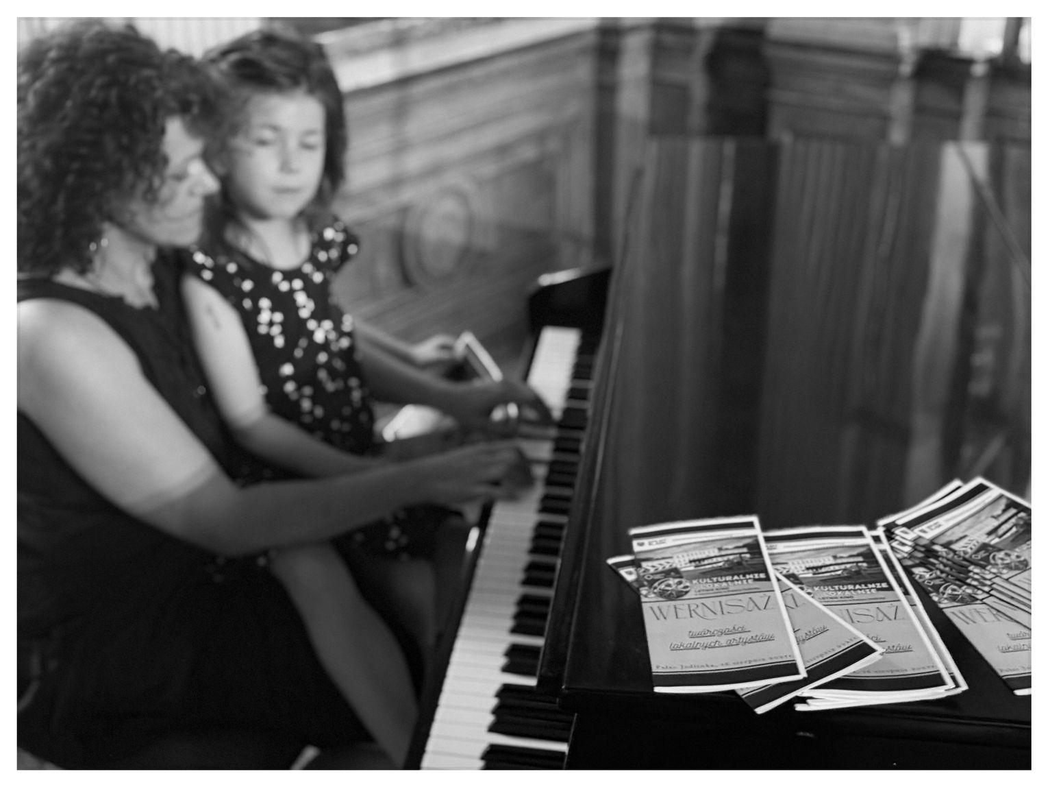 Po pełnym emocji i twórczych rozmów wernisażu na pałacowym dziedzińcu licznie zgromadzona widownia zobaczyła kultowy film w reżyserii Wesa Andersona „Grand Budapest Hotel” z wprowadzeniem w klimat filmu w wykonaniu Marty Człapy i Roberta Delegiewicza.