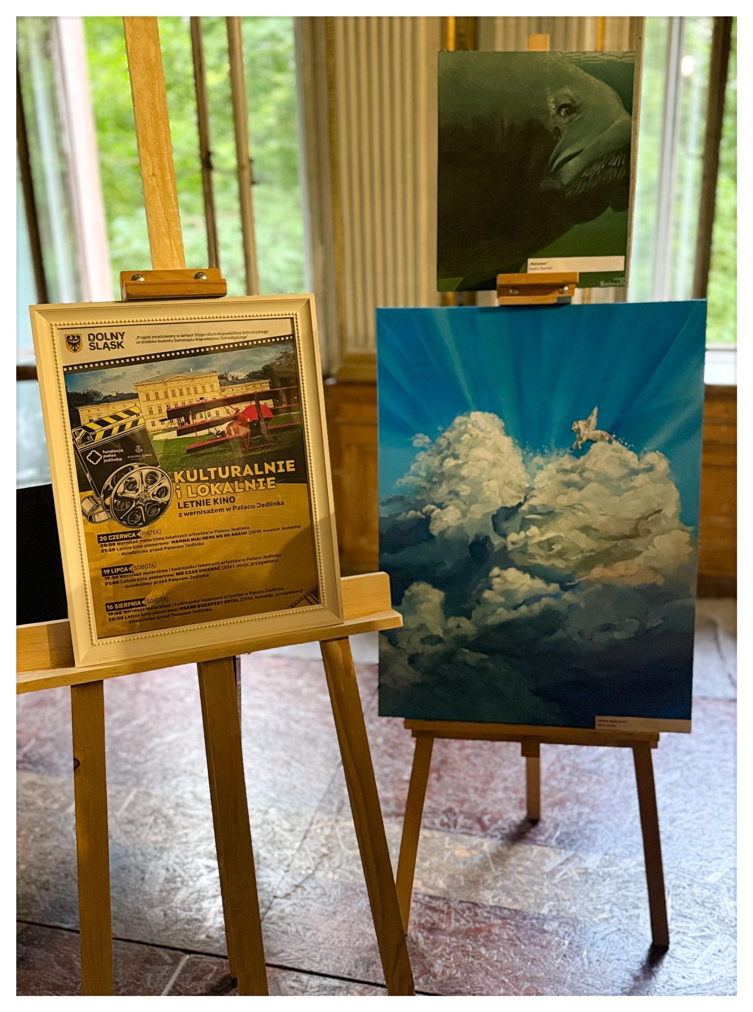-To był naprawdę niezwykły wieczór, który zgromadził lokalnych artystów- amatorów, a także wiele osób zainteresowanych sztuką i wydarzenia kulturalnymi. Cieszę się liczną obecnością gości na wernisażu i na plenerowym pokazie filmu. Była to już trzecia i ostatnia część realizowanego przeze mnie stypendium Marszałka Województwa Dolnośląskiego dla osób zajmujących się twórczością artystyczną i upowszechnianiem kultury. Dziękuję za twórczy klimat, inspirujące spotkania i okazane mi wsparcie wielu osobom. Za pomoc w organizacji trzech wydarzeń szczególne podziękowania kieruję do Sławomira Oxeniusa - Prezesa Fundacji Pałac Jedlinka, a także do właścicieli i pracowników Pałacu Jedlinka oraz Browaru Jedlinka- podsumowuje Sabina Jelewska.