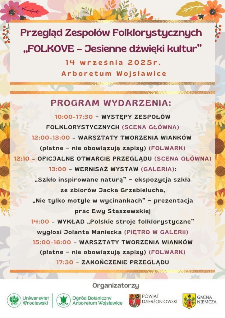 Organizatorzy wydarzenia Powiat Dzierżoniowski, Arboretum Wojsławice oraz Gmina Niemcza serdecznie zapraszają do udziału i wspólnego celebrowania kultury, sztuki i tradycji.