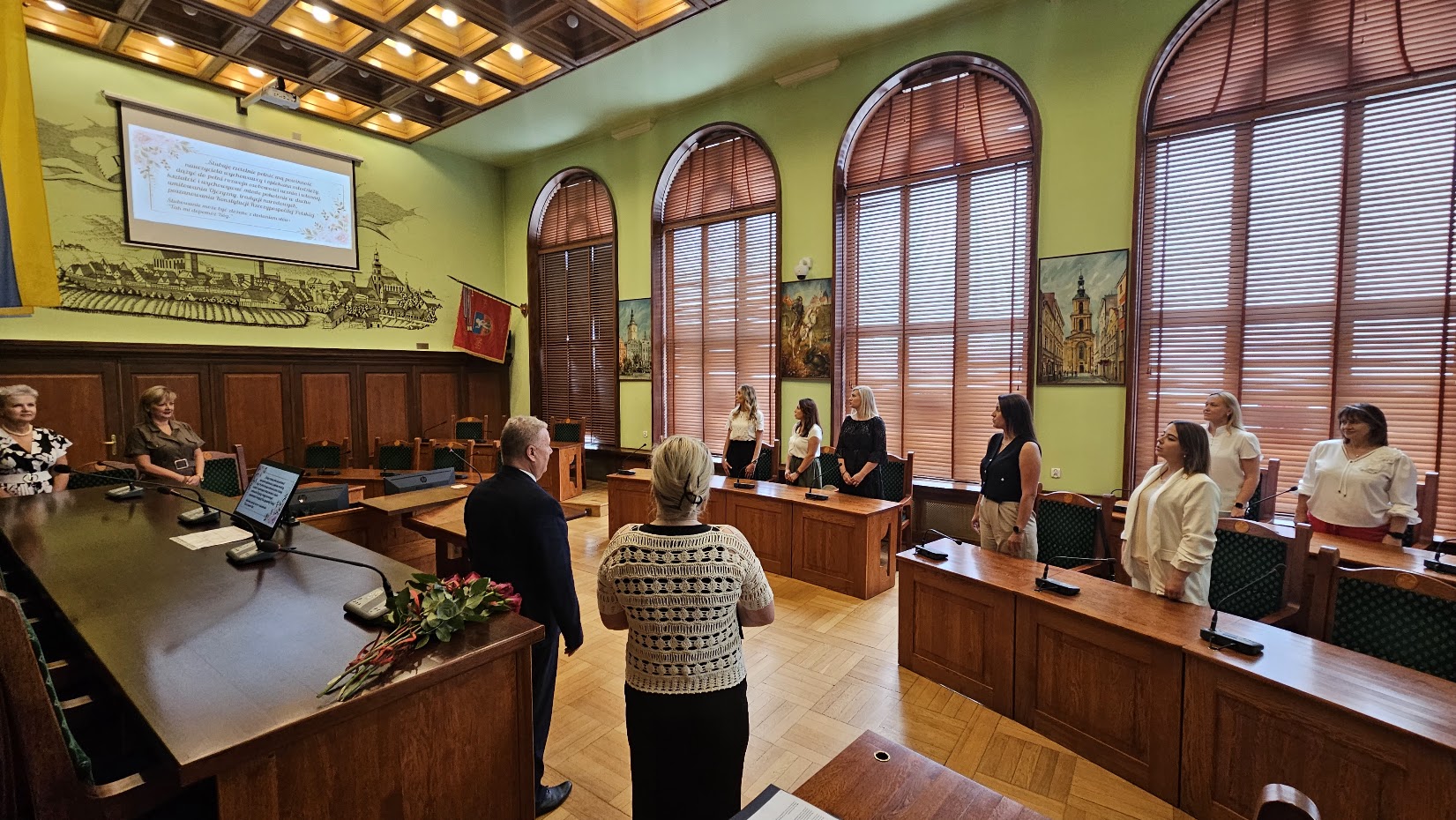 Wszystkie panie uroczyście złożyły na ręce burmistrza ślubowanie o treści: „Ślubuję rzetelnie pełnić mą powinność nauczyciela wychowawcy i opiekuna młodzieży, dążyć do pełni rozwoju osobowości ucznia i własnej, kształcić i wychowywać młode pokolenie w duchu umiłowania Ojczyzny, tradycji narodowych, poszanowania Konstytucji Rzeczypospolitej Polskiej.”