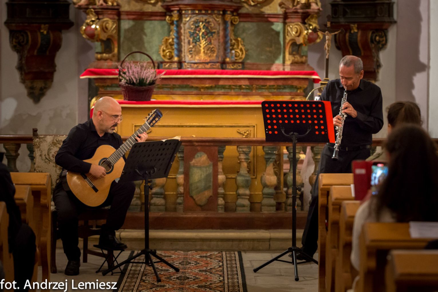 Mieszkańcy Szalejowa Dolnego szczycą się swoimi zabytkami. Najbardziej piękną kaplicą świętej Anny. I w tym właśnie miejscu wystąpili dwaj włoscy muzycy Alberto Cesaraccio - obój i Alessandro Deiana - gitara, prezentując publiczności interesujący program, złożony z kompozycji pisanych na taki właśnie duet. Wieczorny koncert muzyki kameralnej zamykał cykl trzech koncertów oraz pięciu warsztatów muzycznych dla młodych odbiorców, współorganizowanych przez Gminę Kłodzko. Wybór miejsca nie był przypadkowy, bo obok urody kaplica ma dobrą akustykę, taką właśnie, która udanie podkreśla brzmienia (i współbrzmienia) gitary i oboju. Wykonawcy, którzy przyjechali do nas z Sardynii, przygotowali program różnorodny, bogaty, spójny stylistycznie i emocjonalnie. Powędrowaliśmy w obszary wyciszenia i zadumy, ale też w takie, w których nie zabrakło otwartych przestrzeni, jakie budował obój, a które subtelnie, ale i stanowczo dopełniała gitara. Muzycy zaproponowali publiczności program mistrzów instrumentu - Napoleona Coste’a J.K. Metzera i Ferdynand Rebay’a. Kompozytorów, którzy na gitarę (i różne instrumenty towarzyszące) napisali wiele arcydzieł. Co usłyszeliśmy z ich dzieł w niedzielny wieczór? Pierwszą część wypełniła muzyka Napoleona Coste’a, XIX-wiecznego francuskiego wirtuoza i kompozytora. Wysłuchaliśmy czterech jego utworów: Consolazione op. 25, Les Régréts op. 36, Cavatinę op. 37 oraz Le Montagnard op. 34, wykonanych z finezją i precyzją, a w przypadku Le Montagnard z umiejętnie podkreślonymi elementami pastoralnymi. Z kolei kompozycje Josepha (Johanna) Kaspara Mertza, romantycznego artysty pochodzącego z Bratysławy, czyli Le Gondolier oraz Fantaisie originale to popis lekkości gry, ba, pewnej brawury interpretacyjnej. Zwieńczeniem niezapomnianego wieczoru muzycznego w kaplicy św. Anny była Sonata e- moll Ferdynanda Rebaya. Ta kompozycja austriackiego kompozytora, napisana w 1925 roku, zasługuje na to, żeby częściej była wykonywana w salach koncertowych. A przez nas słuchana. Dlaczego? Przede wszystkim, że dobrze zagrana (tak jak w Szalejowie) daje wykonawcom możliwość rozległej, pełnej ekspresji, a nam słuchającym za każdym razem pozwala na głębszy, bogatszy odbiór. Znakomita technika, dobór programu, jego konstrukcja, wreszcie dostosowanie go do miejsca to cechy, które sprawiły, że mieliśmy do czynienia z duetem wykonawców, wprost z Sardynii, którzy zostawią trwały ślad w naszym odbiorze muzyki. A tekże w naszych wyborach - czego słuchać?
