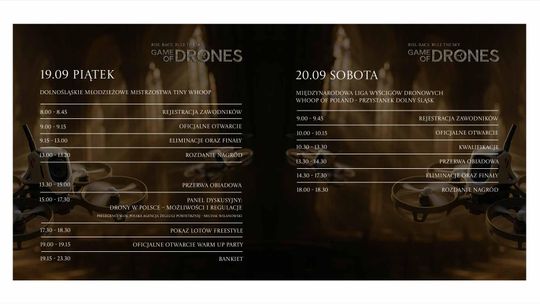 Game of Drones zaczyna się już w ten piątek, 19 września 2025 roku. Poniżej przesyłam Państwu harmonogram wydarzenia wraz z jej najważniejszymi punktami.