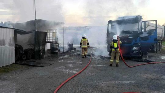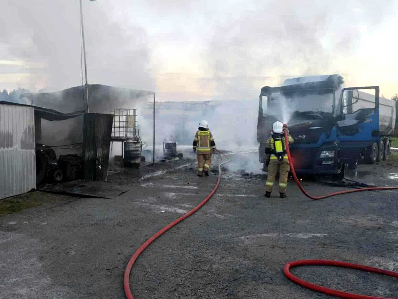Jordanów Ślaski, pożar zabudowań gospodarczych i ciężarówki