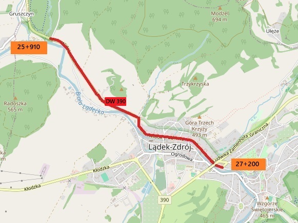 Droga wojewódzka 390 w Lądku-Zdroju była nieprzejezdna po katastrofalnej powodzi we wrześniu 2024 roku, która zniszczyła wiele dróg i infrastrukturę w regionie. W wyniku intensywnych opadów doszło do podtopień, a rzeka Biała Lądecka wystąpiła z brzegów, zalewając ulice miasta i powodując katastrofalne straty. Planowana przebudowa w większości swojego przebiegu prowadzi właśnie przez obszar zniszczony przez powódź. Oprócz jezdni wzdłuż rzeki zostaną odbudowane lub wyremontowane balustrady, chodniki, parkingi i oświetlenie.